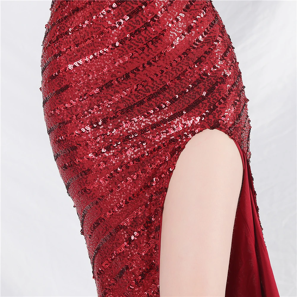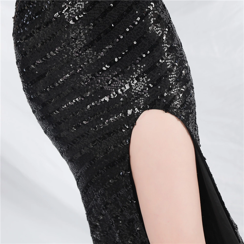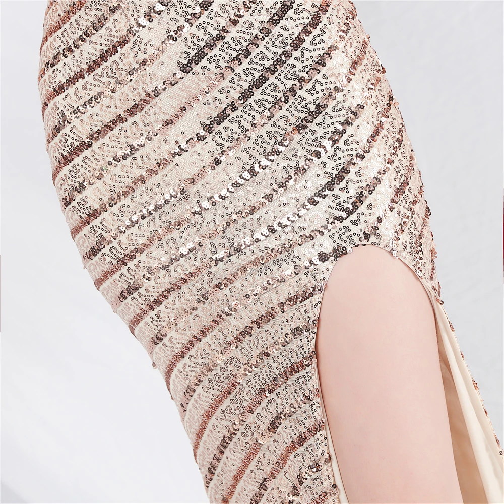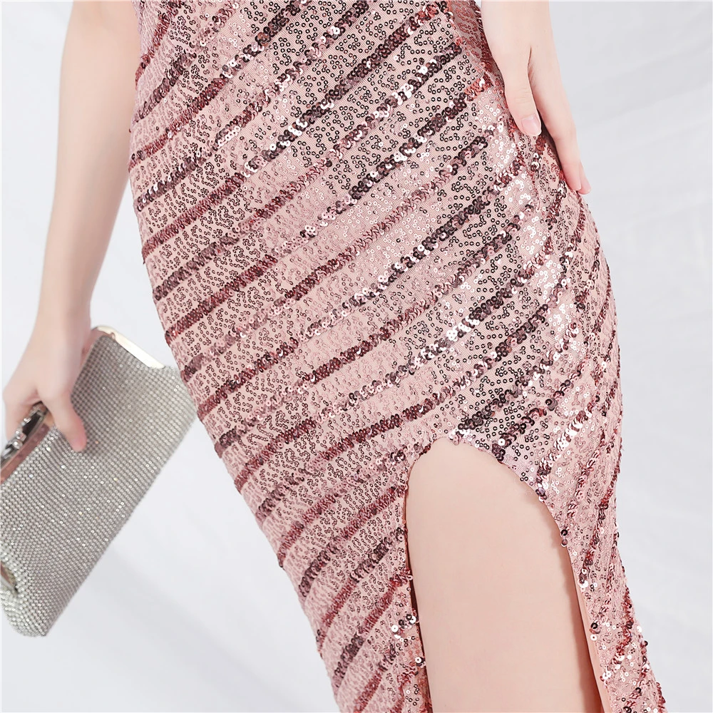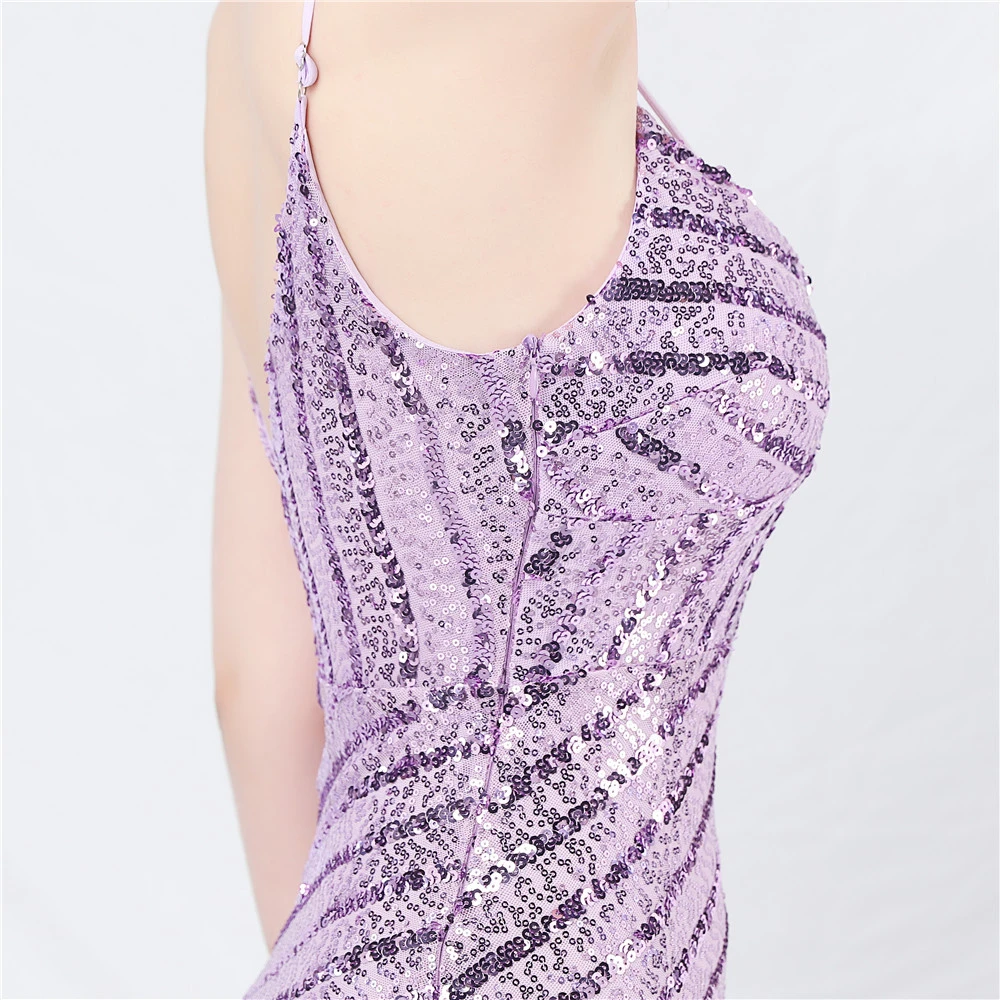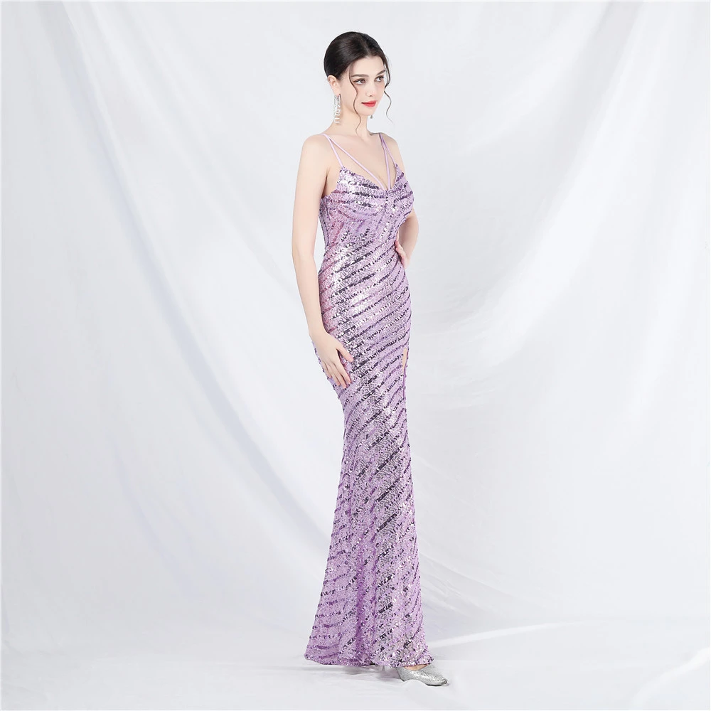 Fashionable Women'S Suspender Low-Cut Sequined Evening Dress