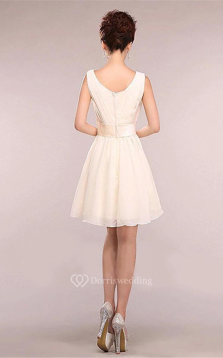 Feminine Chiffon Short Dress With Satin Bow