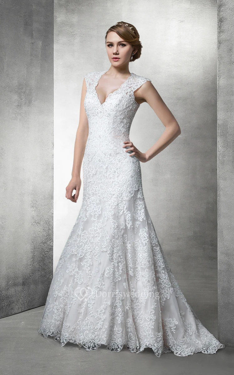 Fit and Flare Lace Wedding Gown With Plunging Neckline