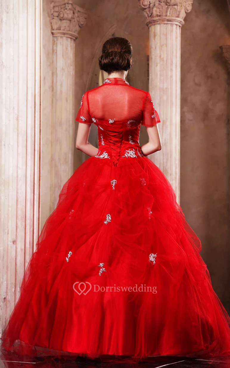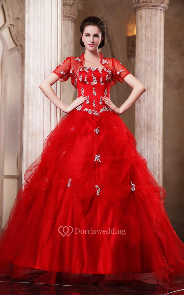 Flamboyant A-Line Ball Gown With Beading and Removable Bolero