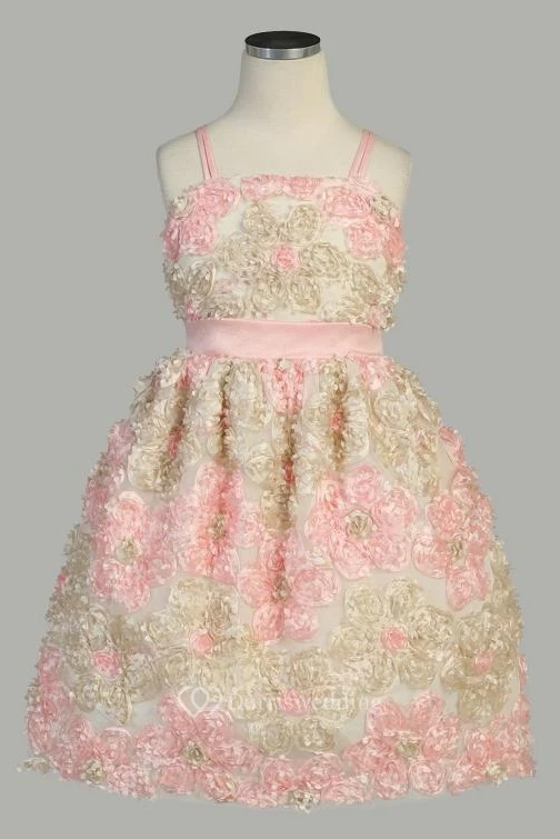 Spaghetti Knee-Length Tiered Tulle&Taffeta Flower Girl Dress