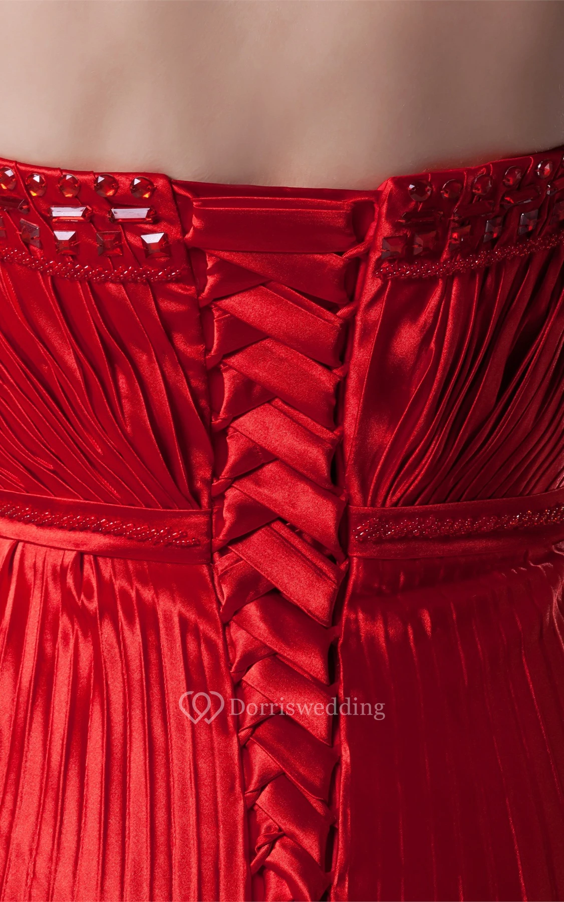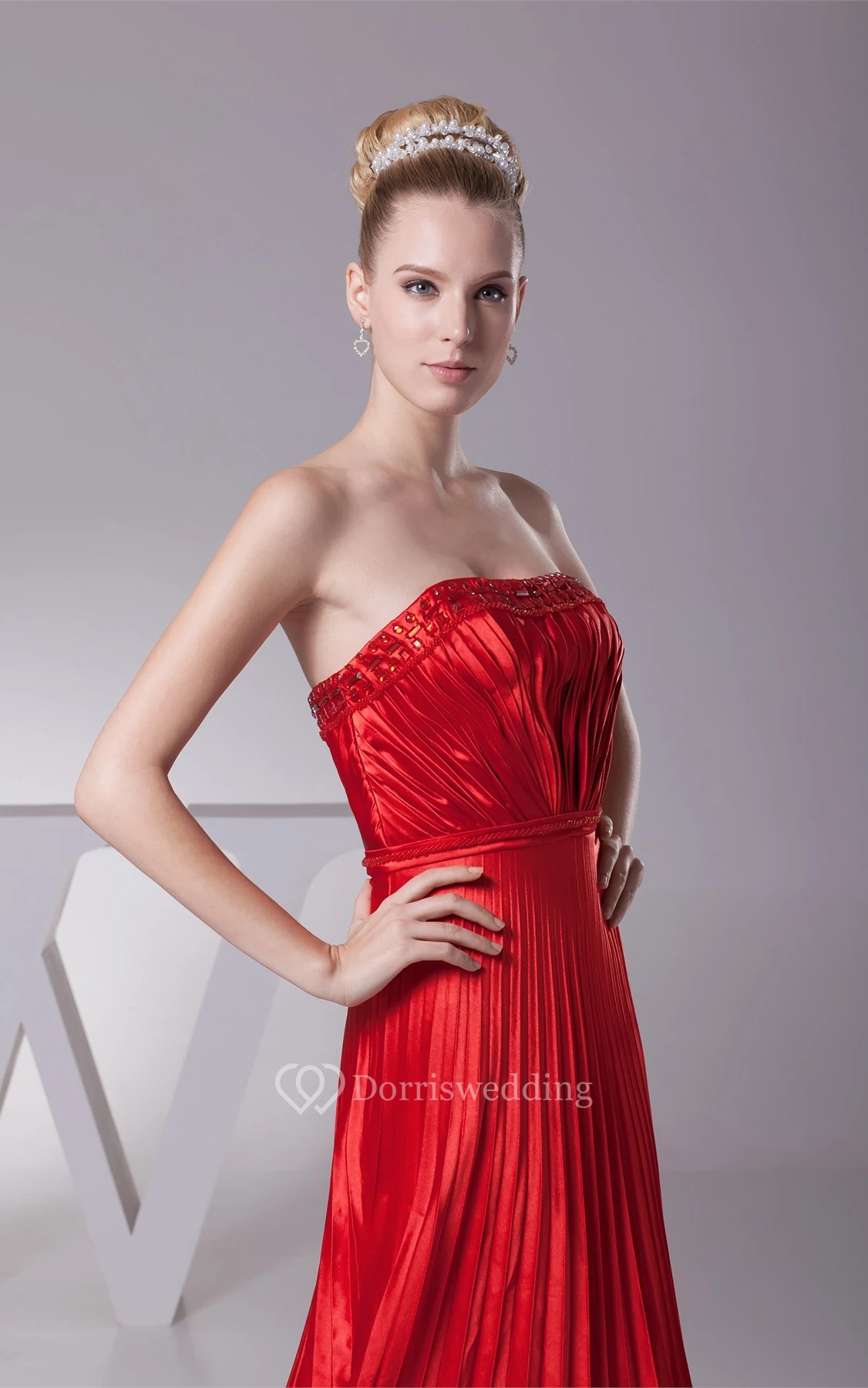 Flamboyant Pleated Sleeveless Beading and Dress With Ruching