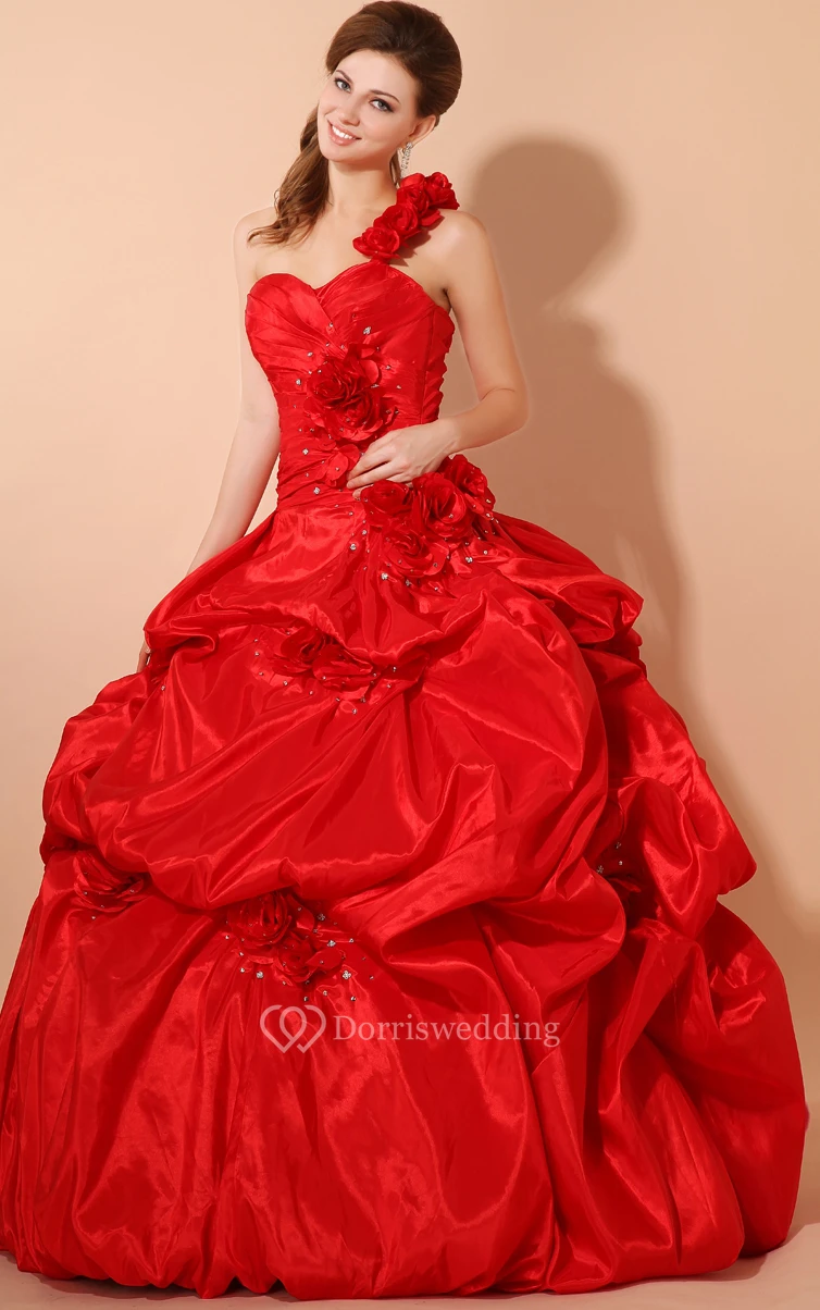 Flamboyant Sweetheart A-Line Ball Gown With Flower and Pick-Up Ruffles