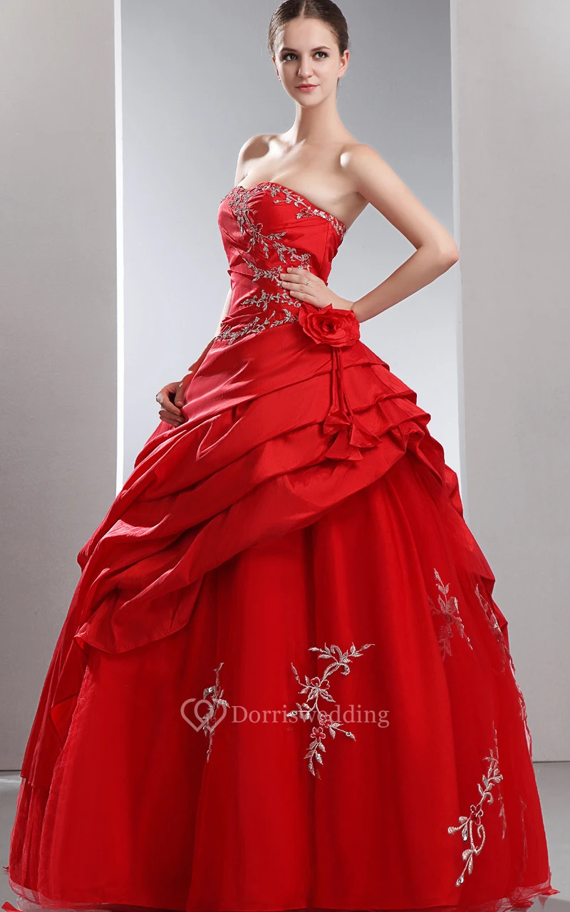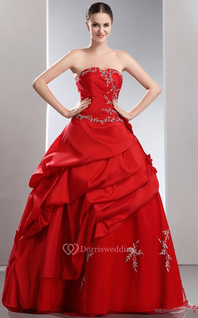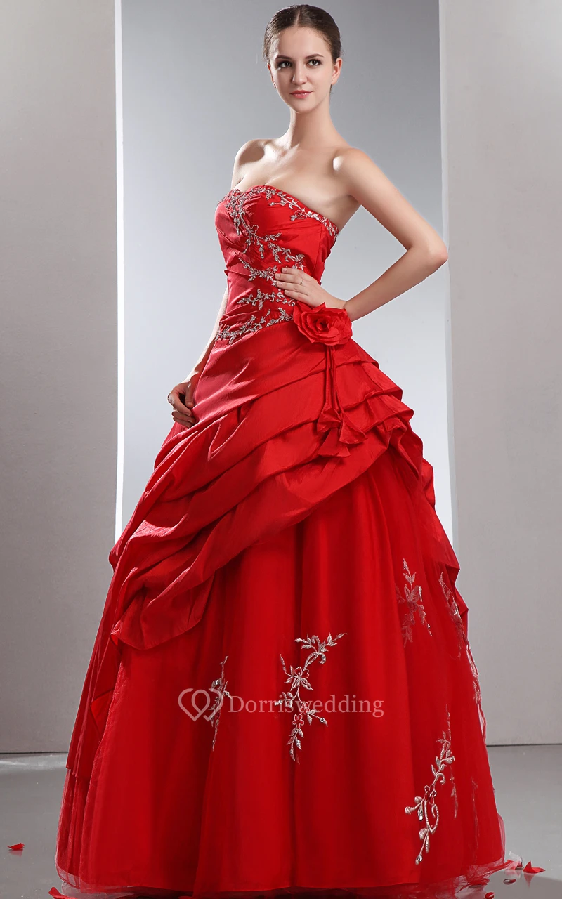 Flamboyant Taffeta Tiered A-Line Ball Gown With Beading and Embroideries