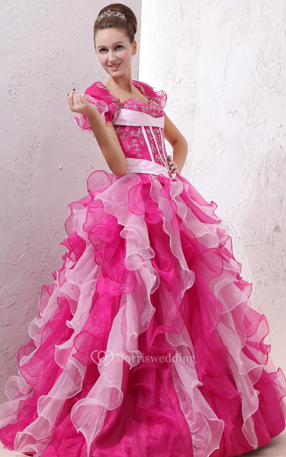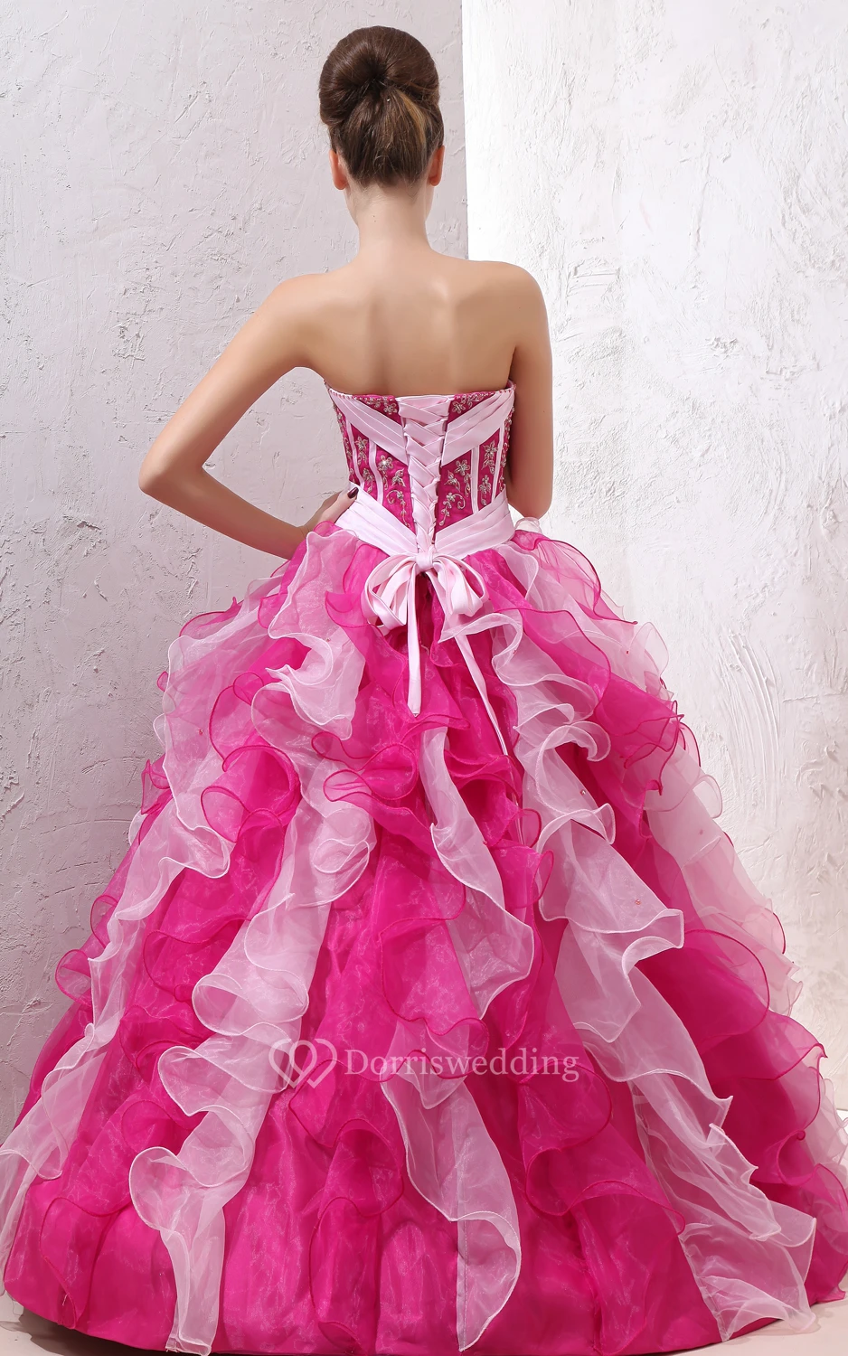 Flattering Organza Ball Gown With Ruffles and Embroideries