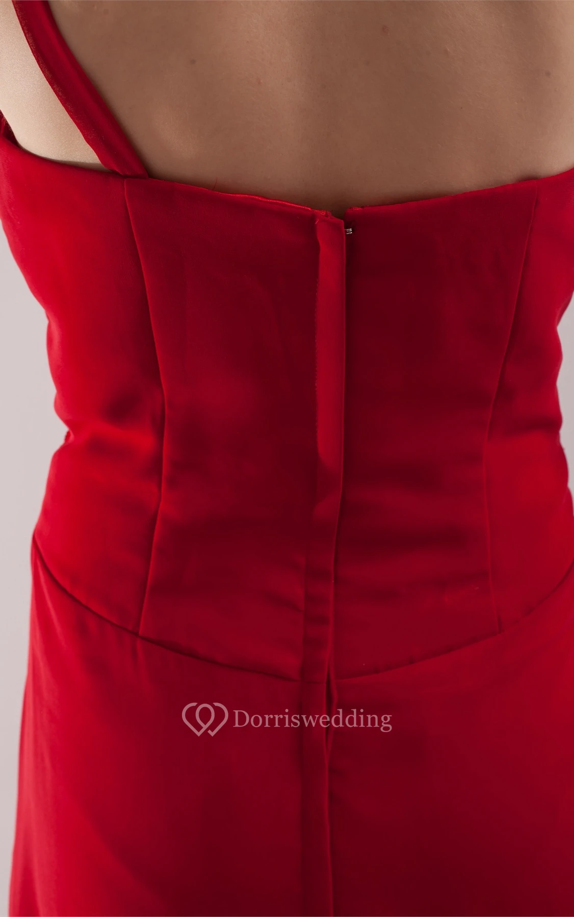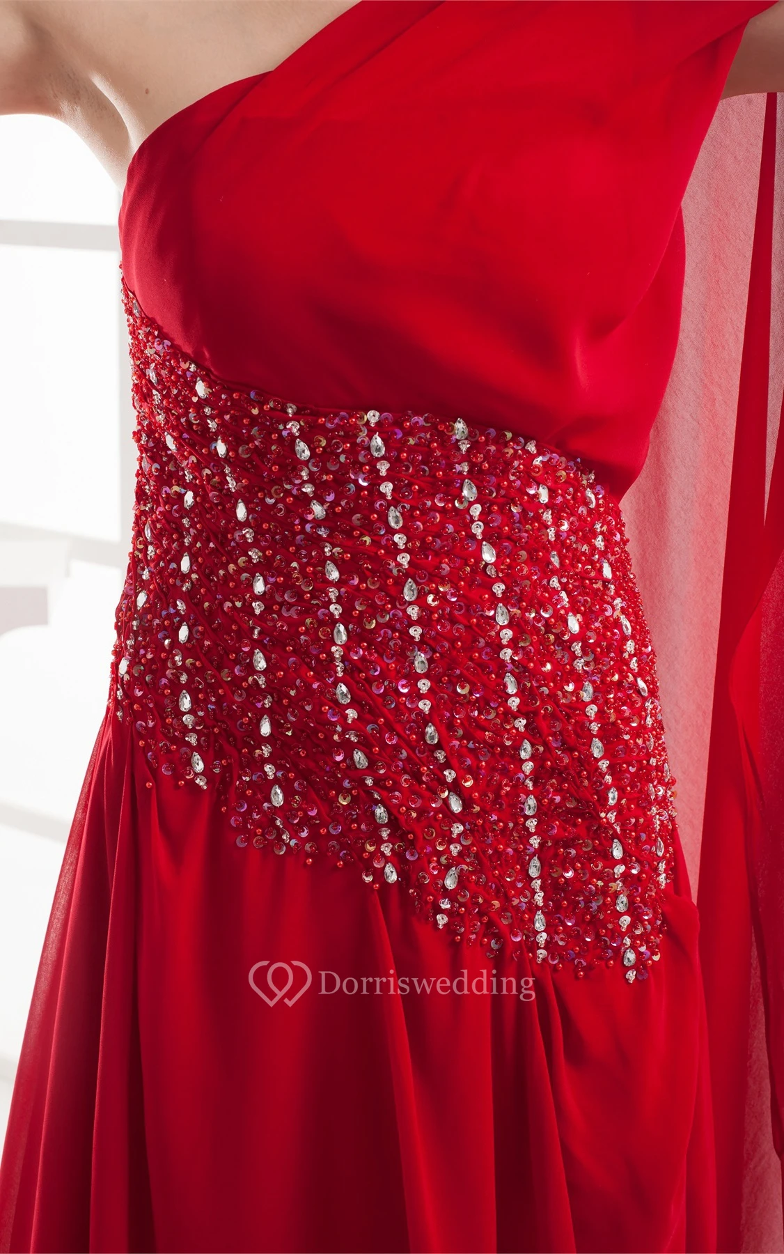 Flay Chiffon Floor-Length Asymmetrical Gemmed Waist and Dress With Pleats