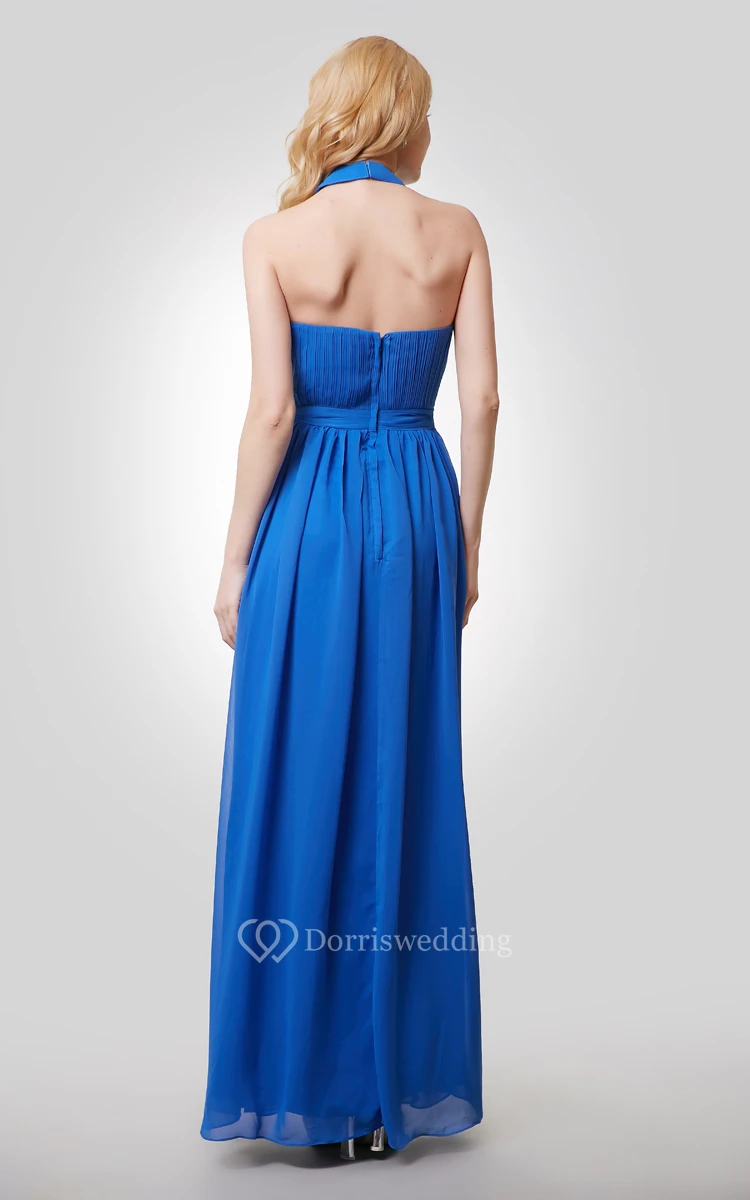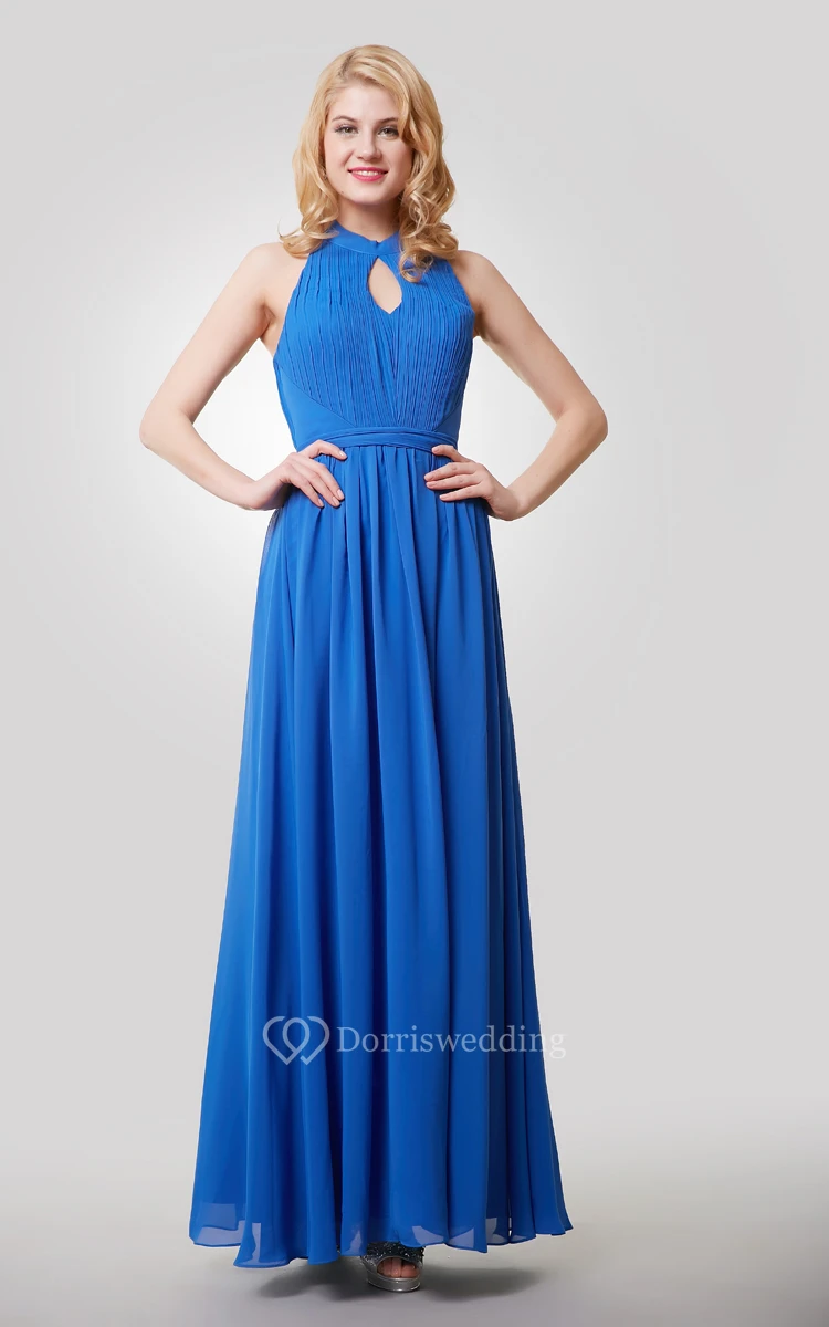 Floor Length A-Line Chiffon Dress With Halter and Keyhole