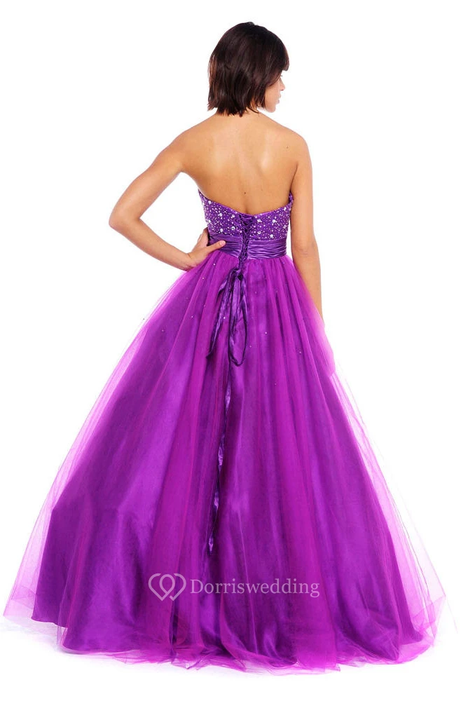 Floor-Length Ball Gown Sleeveless Beaded Sweetheart Tulle Prom Dress