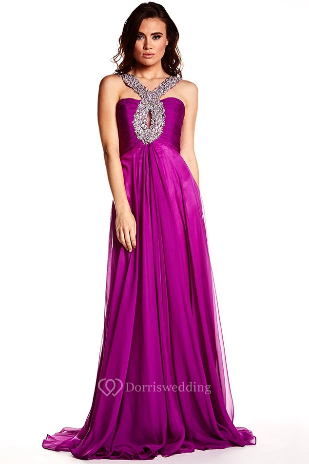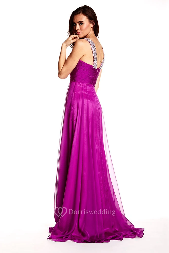 Floor-Length Beaded Strapped Sleeveless Chiffon Prom Dress