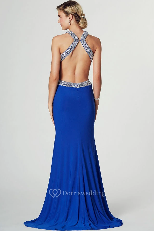 Floor-Length Beaded Strapped Sleeveless Jersey Prom Dress