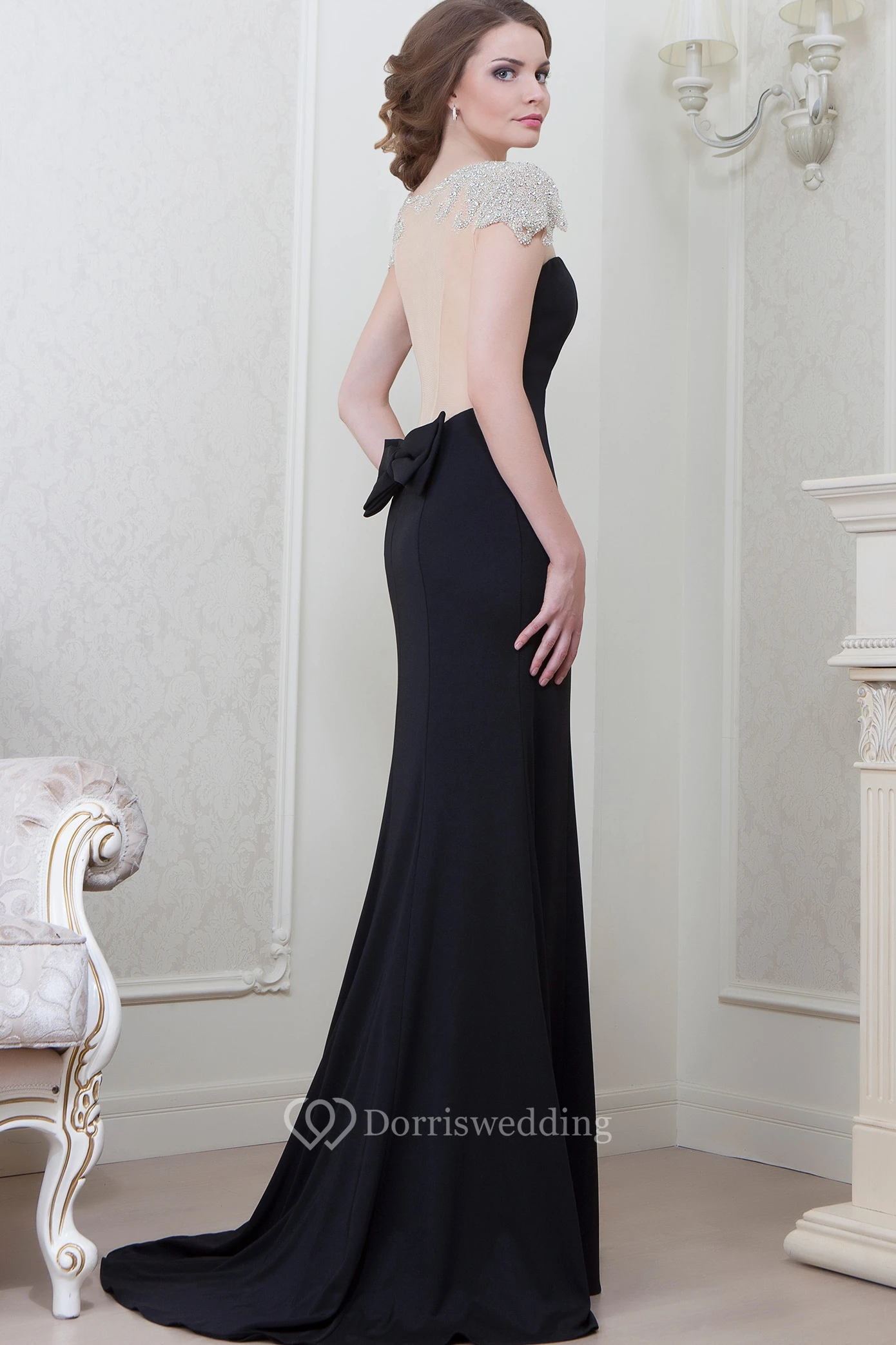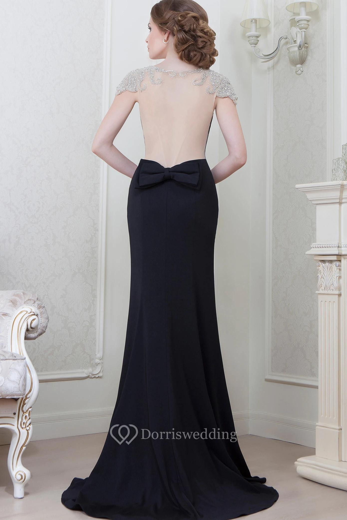 Floor-Length Cap Sleeve Scoop Neck Bowed Chiffon Evening Dress