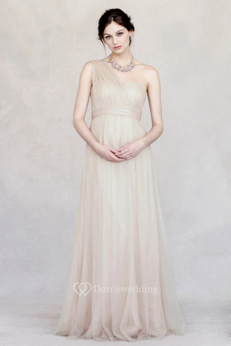 Floor-Length Criss-Cross Empire One-Shoulder Sleeveless Tulle Bridesmaid Dress