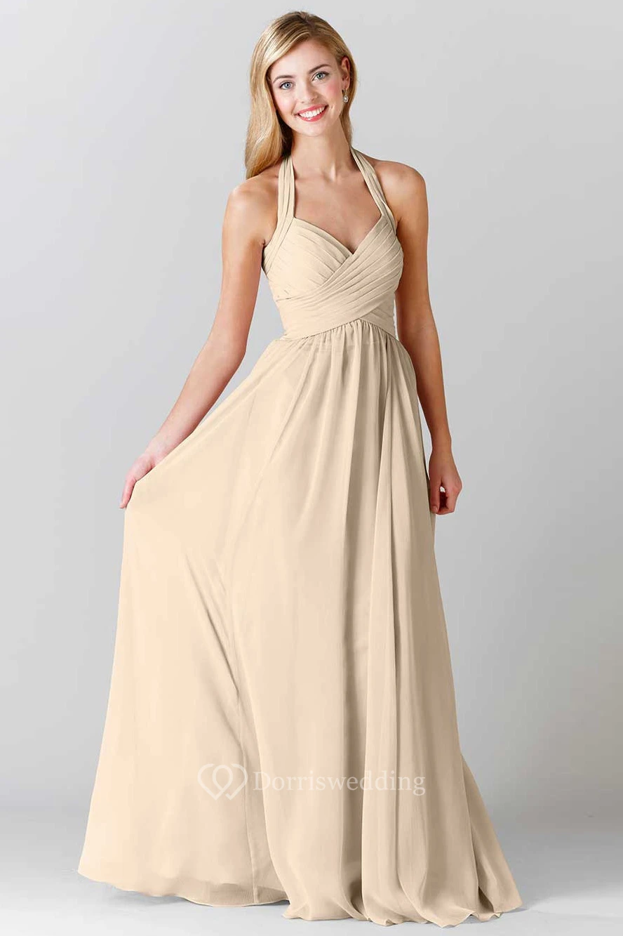 Floor-Length Halter Criss-Cross Sleeveless Chiffon Bridesmaid Dress