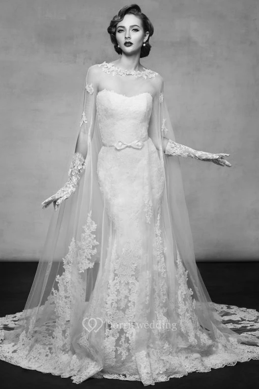 Floor-Length High Neck Appliqued Lace Wedding Dress With Bow