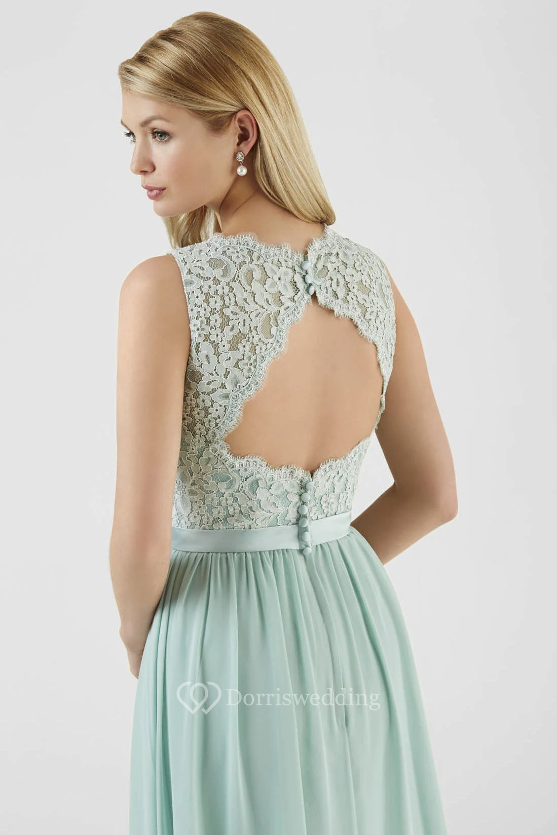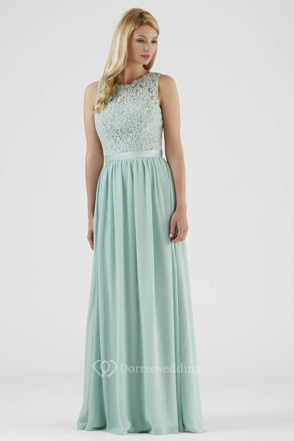Floor-Length Lace Sleeveless Scoop Neck Chiffon Bridesmaid Dress