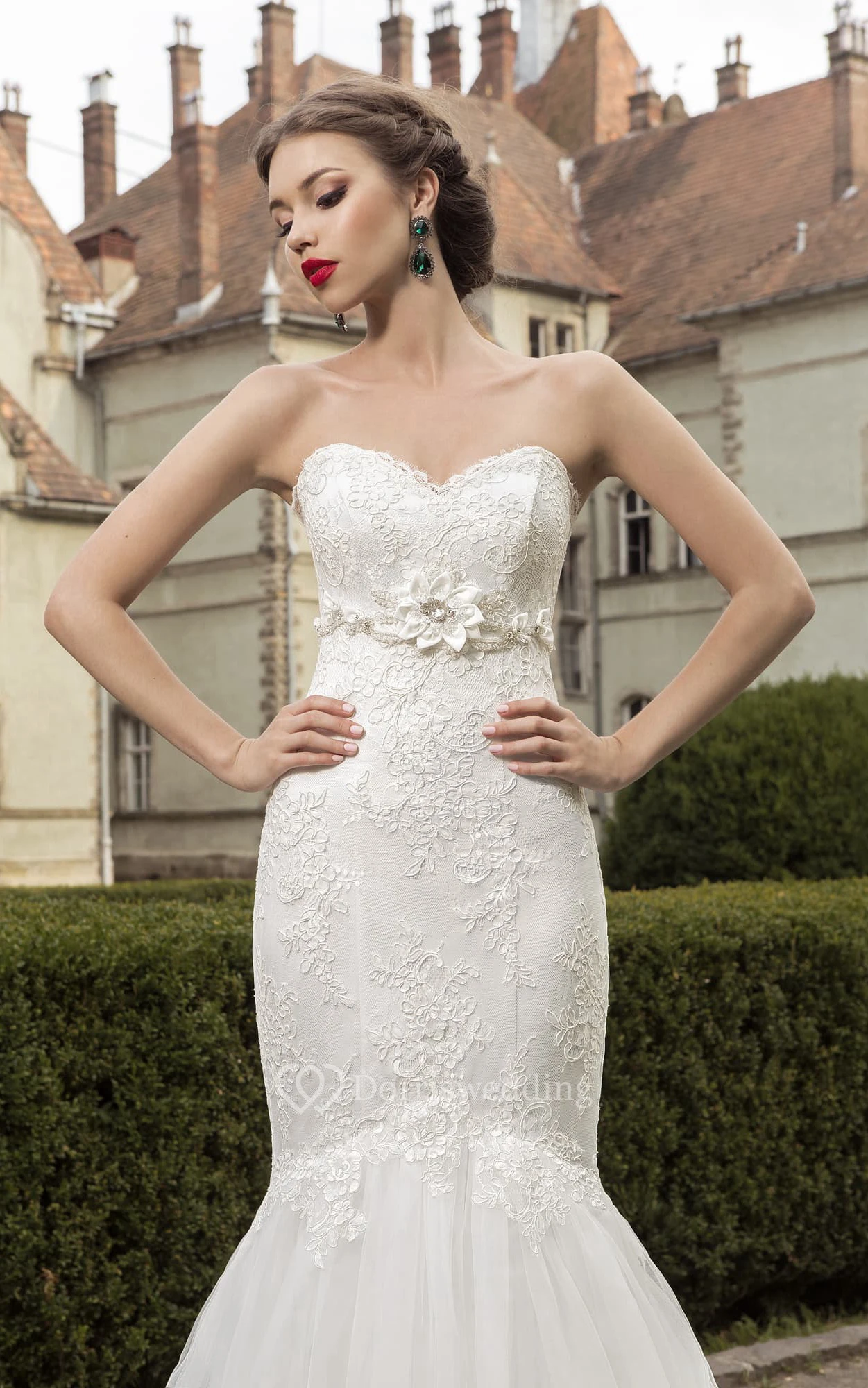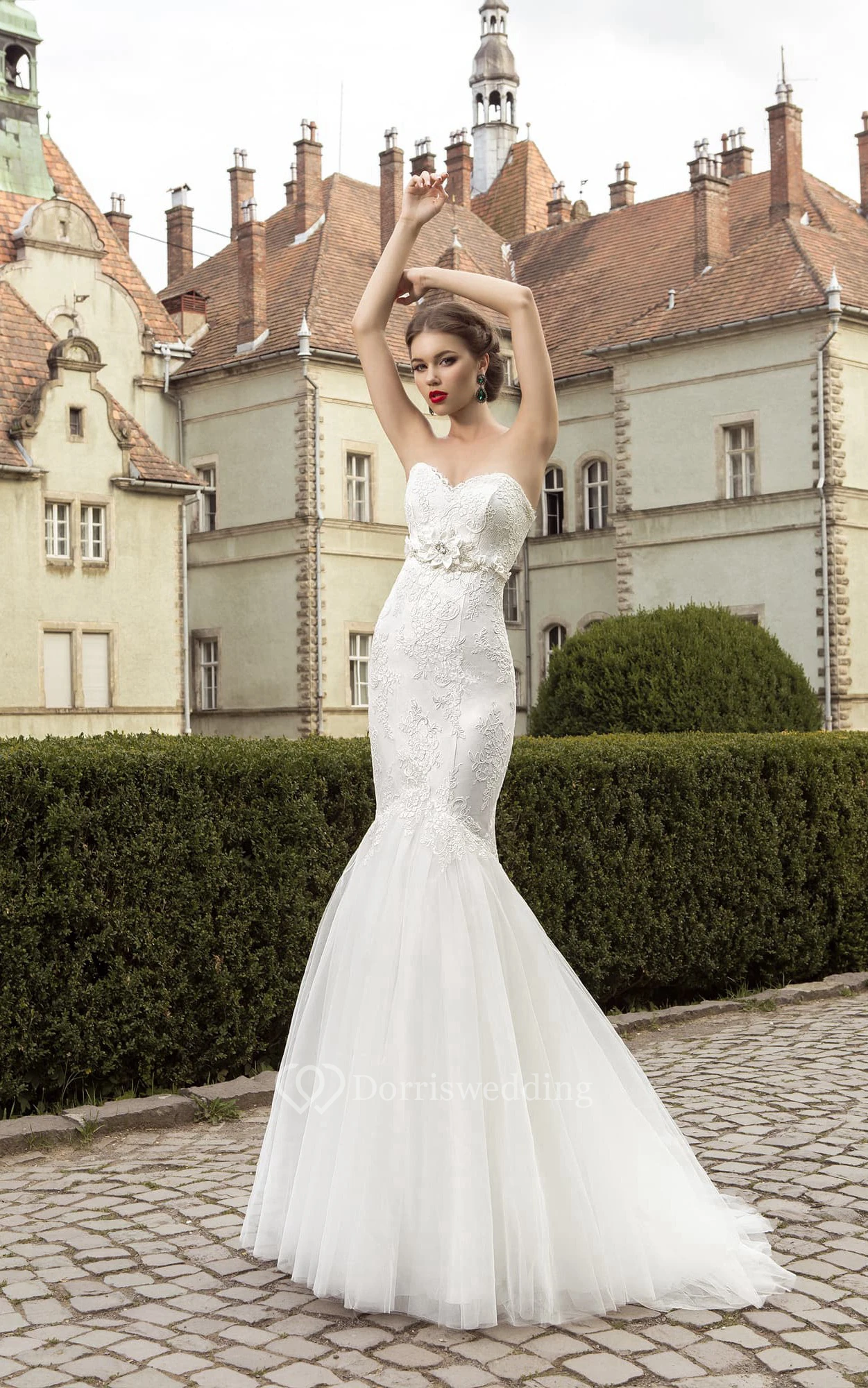 Floor-length Mermaid Appliques Sweetheart Flower(s) Dress