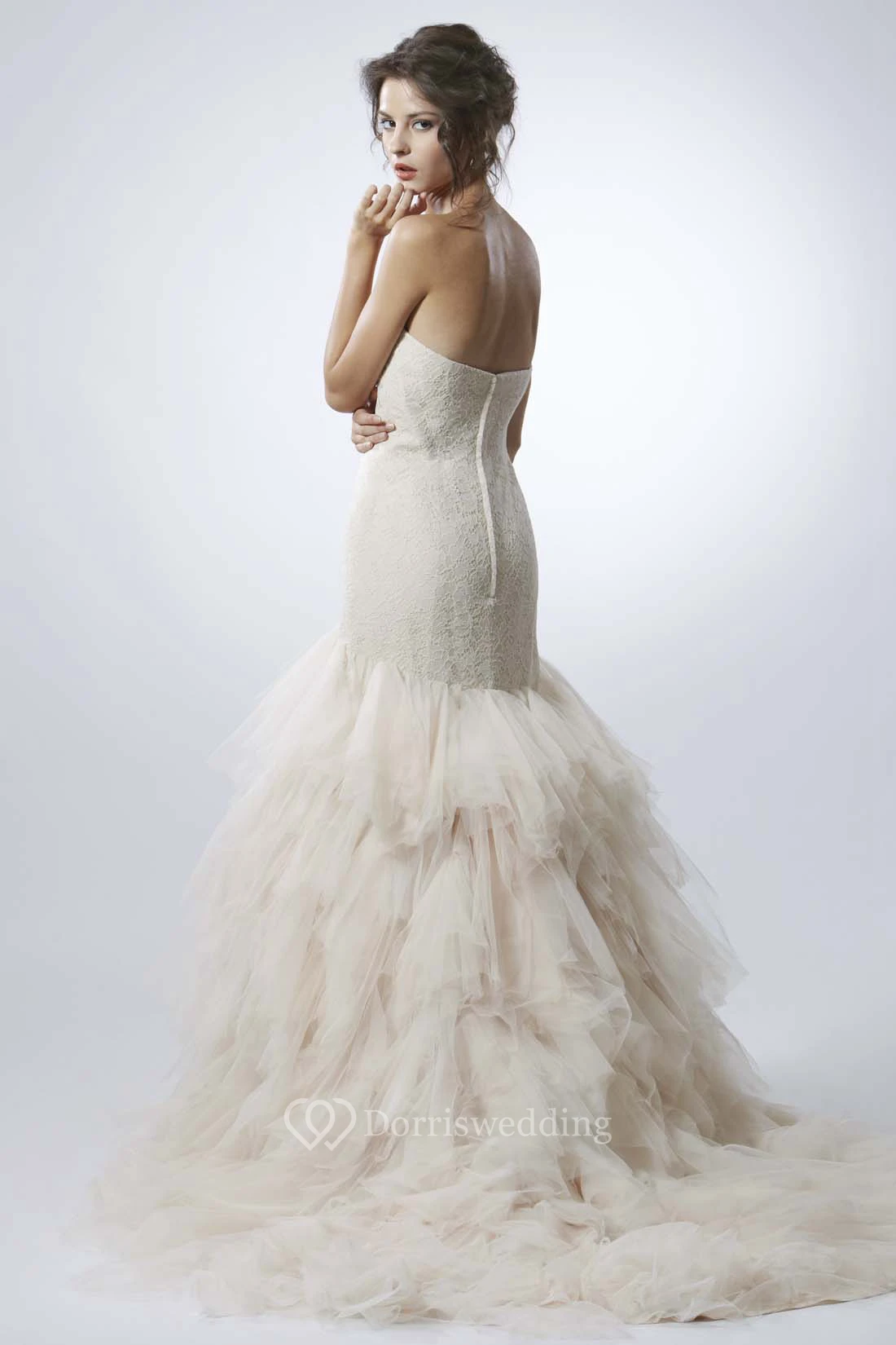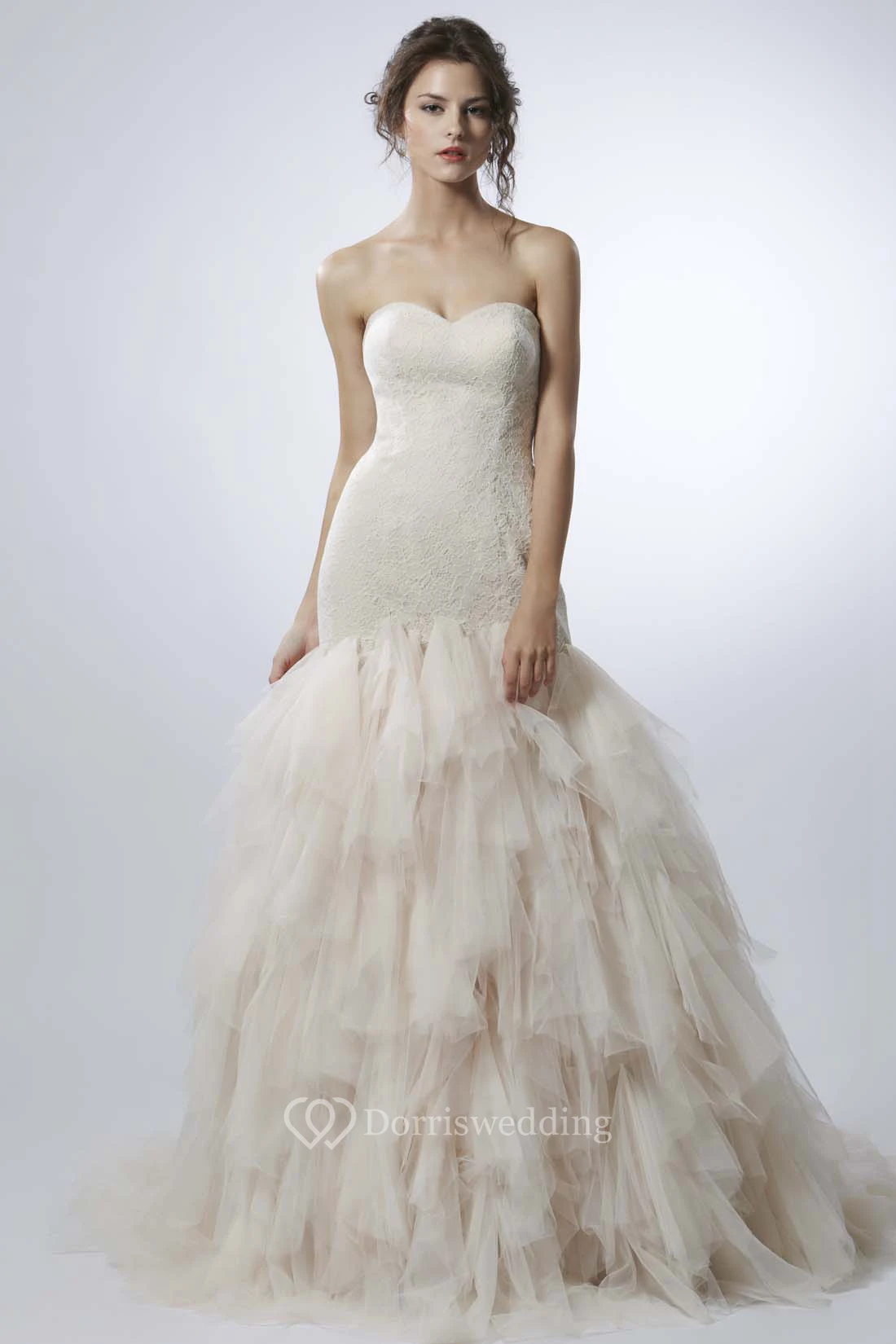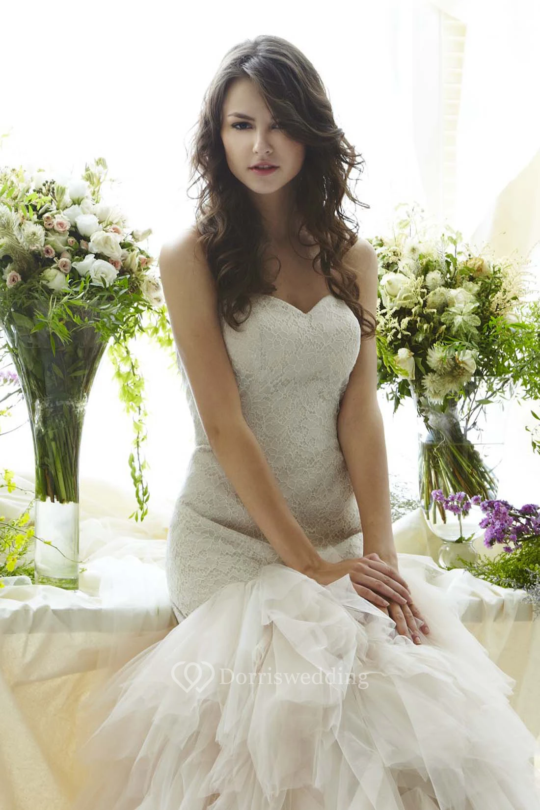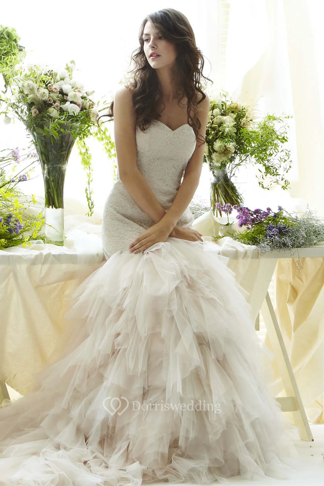 Floor-Length Mermaid Cascading-Ruffled Sleeveless Sweetheart Tulle Wedding Dress