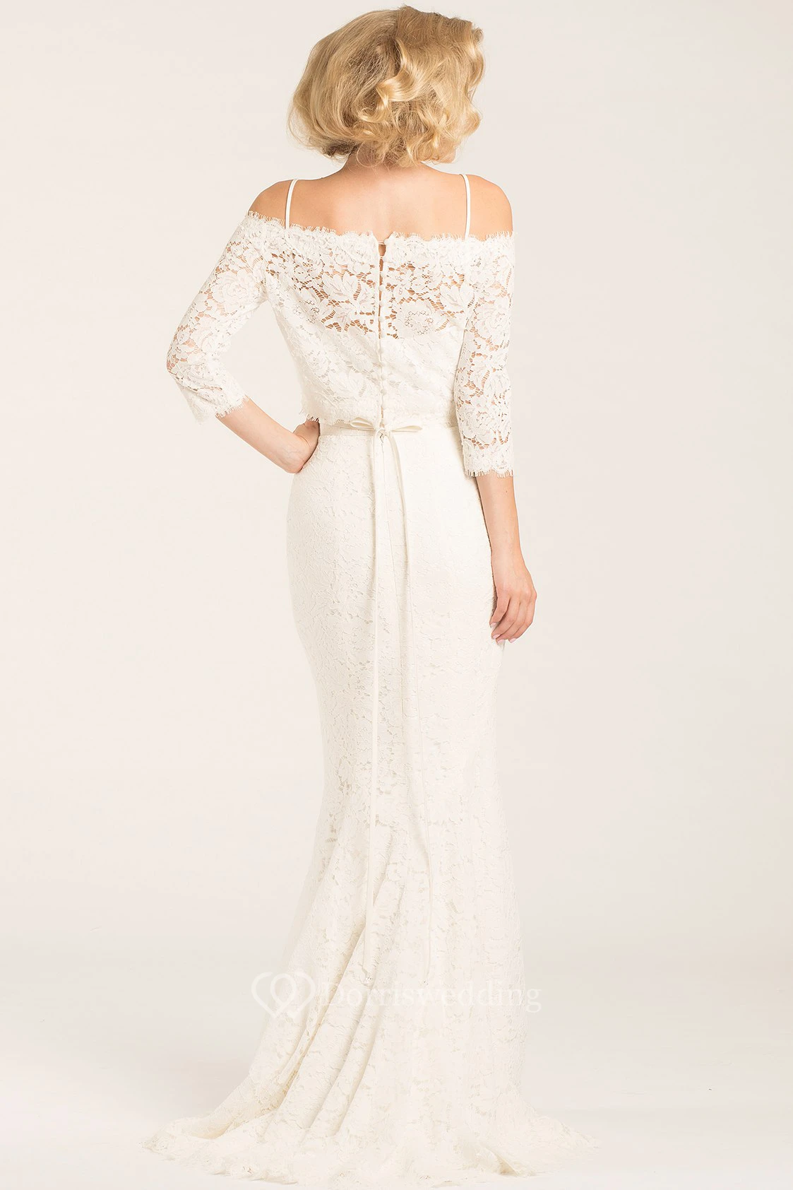 Floor-Length Off-The-Shoulder Half Sleeve Jeweled Lace Wedding Dress