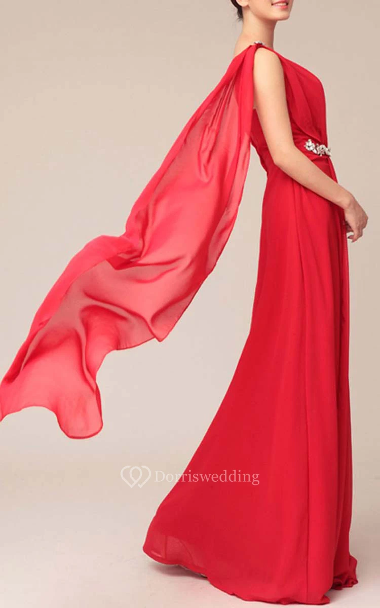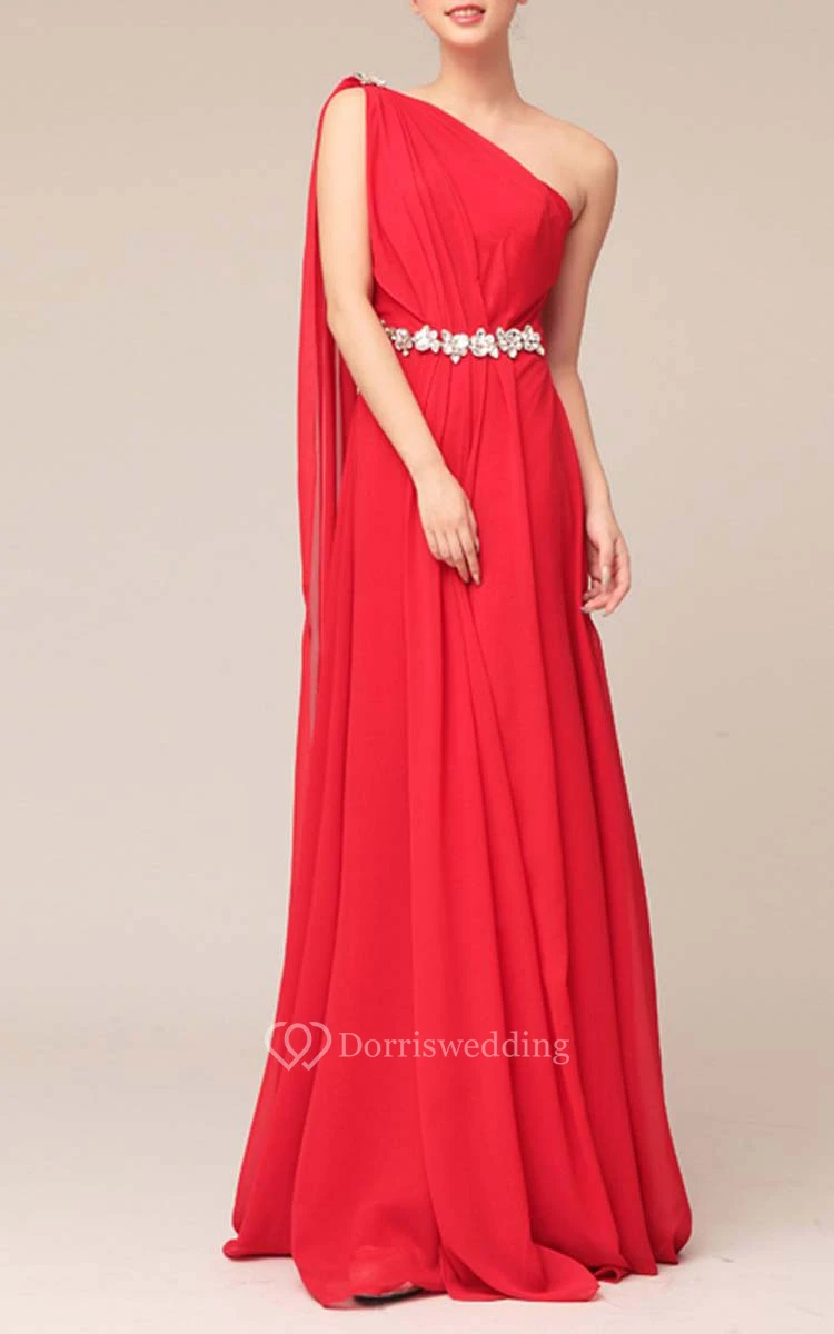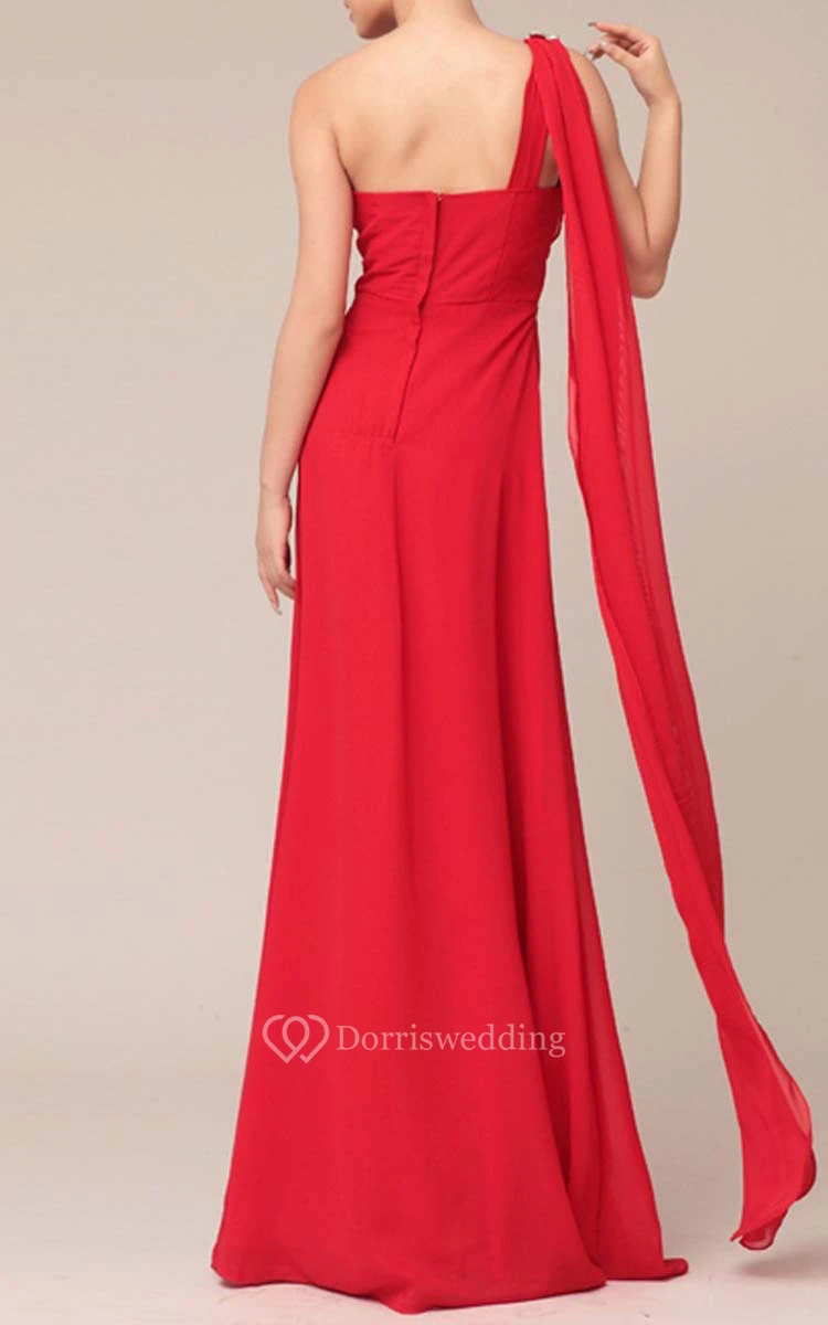 Floor-length One-shoulder Beaded Sheath Chiffon Bridesmaid Dress With Watteau Train