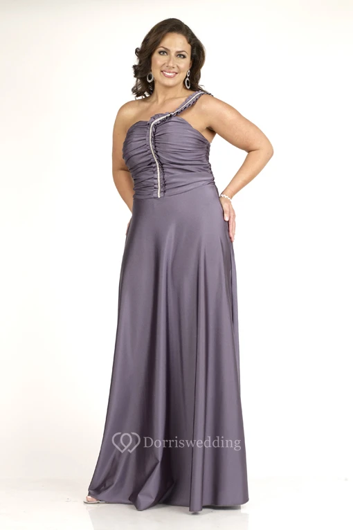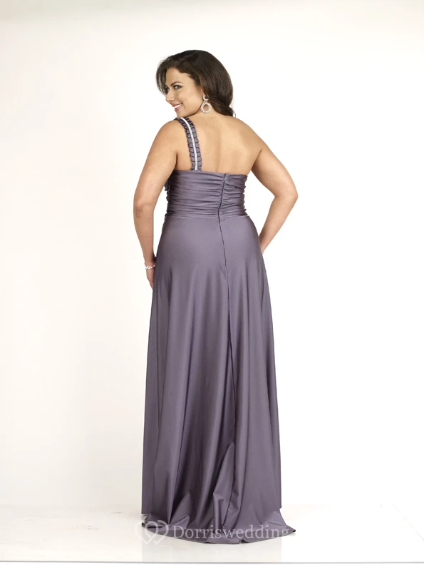 Floor-length One-shoulder Sleeveless Jersey Ruching Sweep Train Zipper Dress