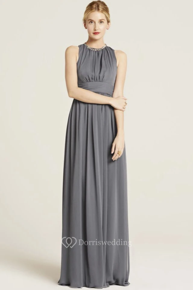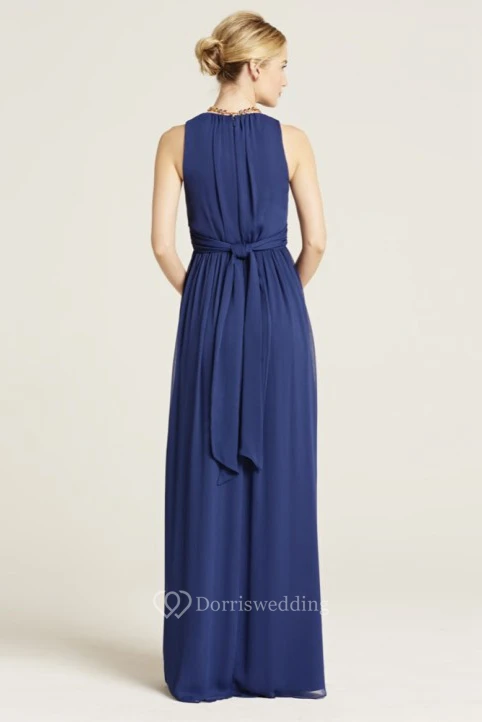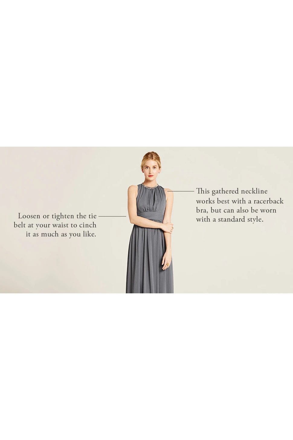 Floor-Length Sleeveless Beaded High Neck Chiffon Bridesmaid Dress With Bow