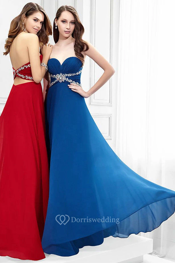 Floor-Length Sleeveless Criss-Cross Sweetheart Chiffon Prom Dress