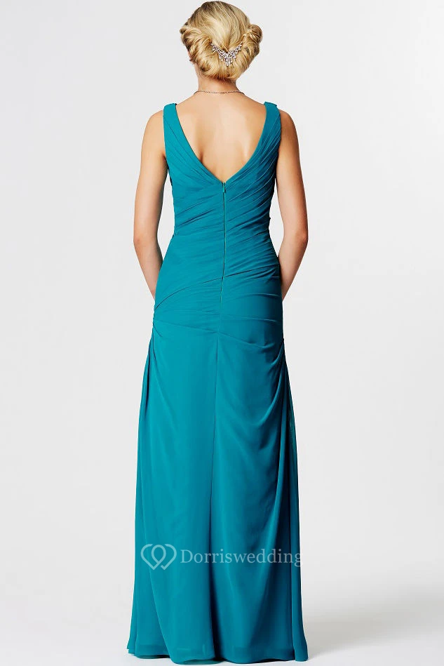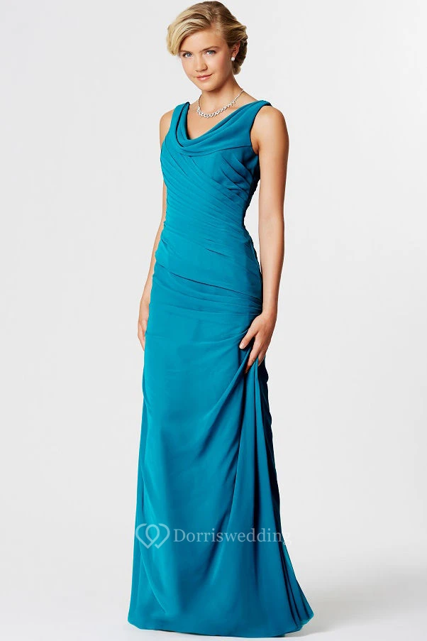 Floor-Length Sleeveless Ruched Cowl Neck Chiffon Bridesmaid Dress