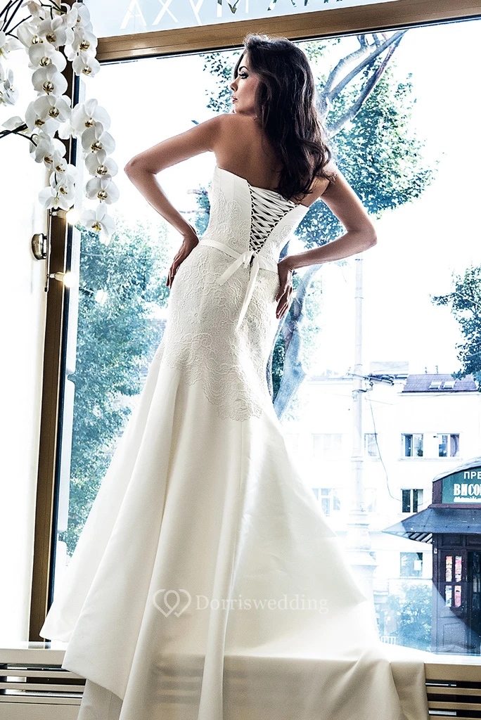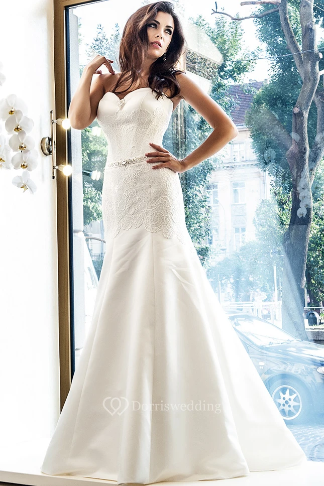 Floor-Length Sleeveless Sweetheart Appliqued Satin Wedding Dress
