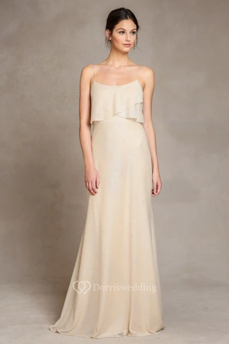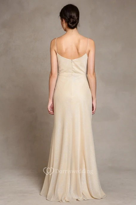Floor-Length Spaghetti Chiffon Bridesmaid Dress With V Back