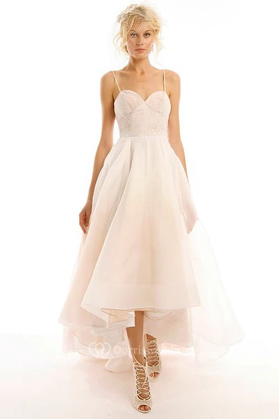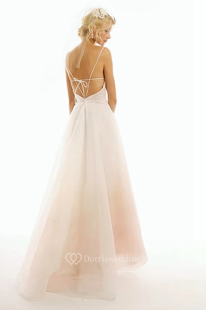 Floor-Length Spaghetti Draped Organza Wedding Dress With Straps