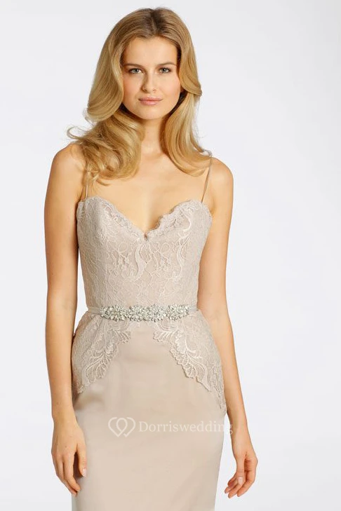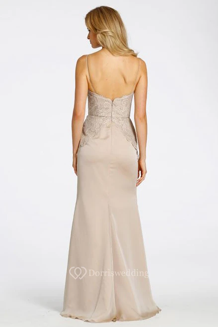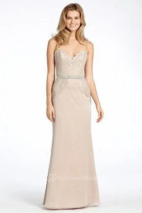 Floor-Length Spaghetti Jeweled Chiffon Bridesmaid Dress With Lace And V Back