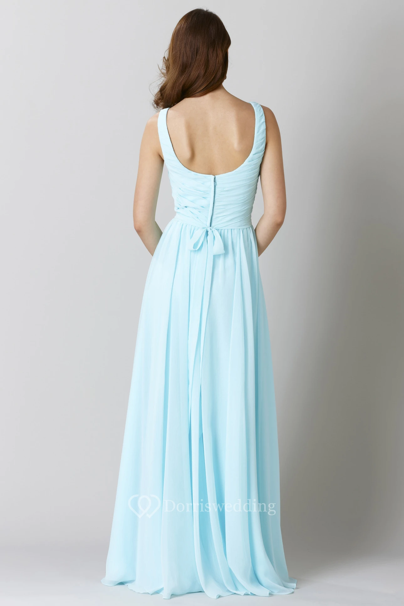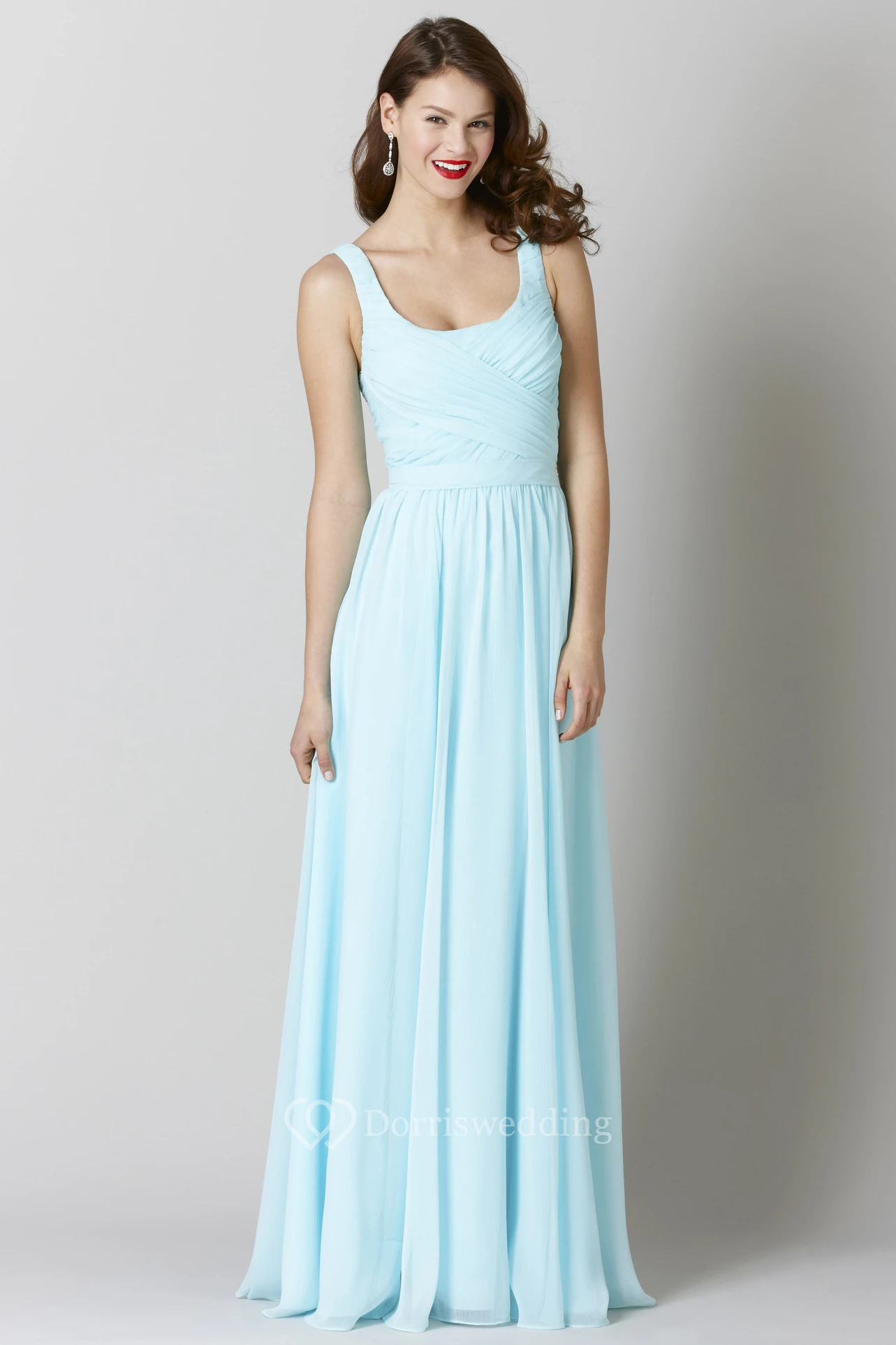 Floor-Length Square Criss-Cross Chiffon Bridesmaid Dress With Pleats And V Back