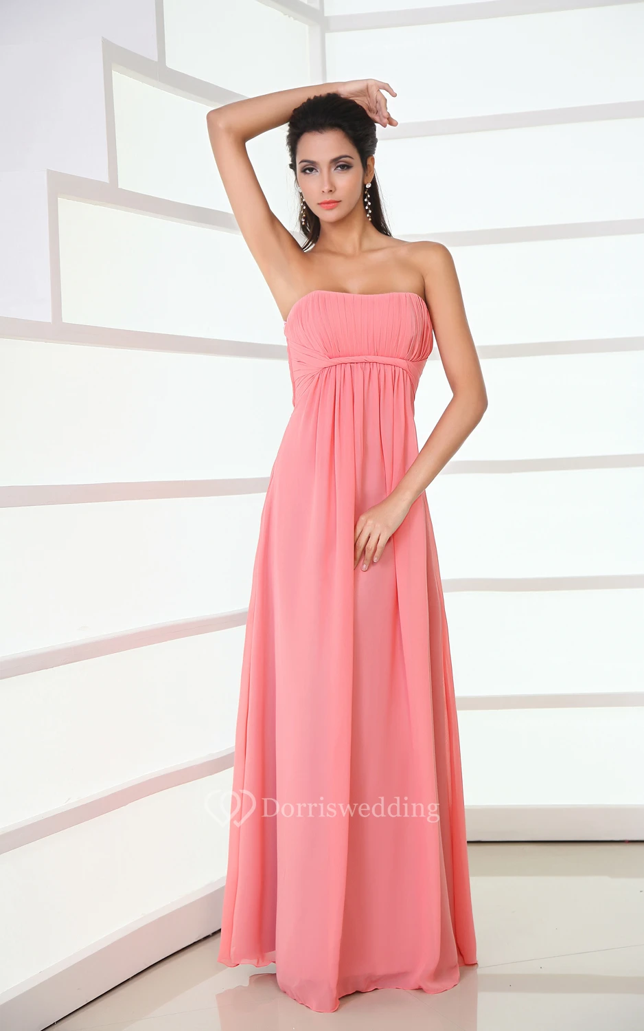 Floor-Length Strapless Chiffon Dress With Zipper-Back