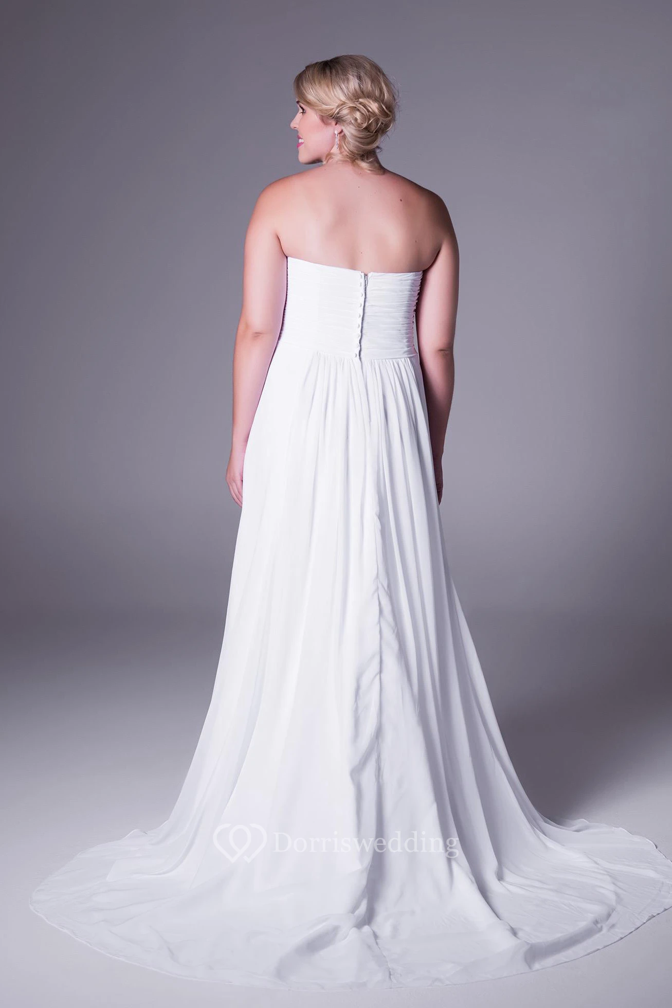 Floor-Length Strapless Chiffon Plus Size Wedding Dress With Ruching And Zipper