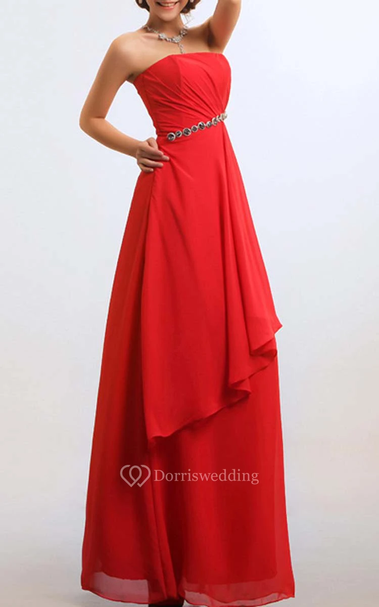 Floor-length Strapless Side-draped Empire Chiffon Bridesmaid Dress