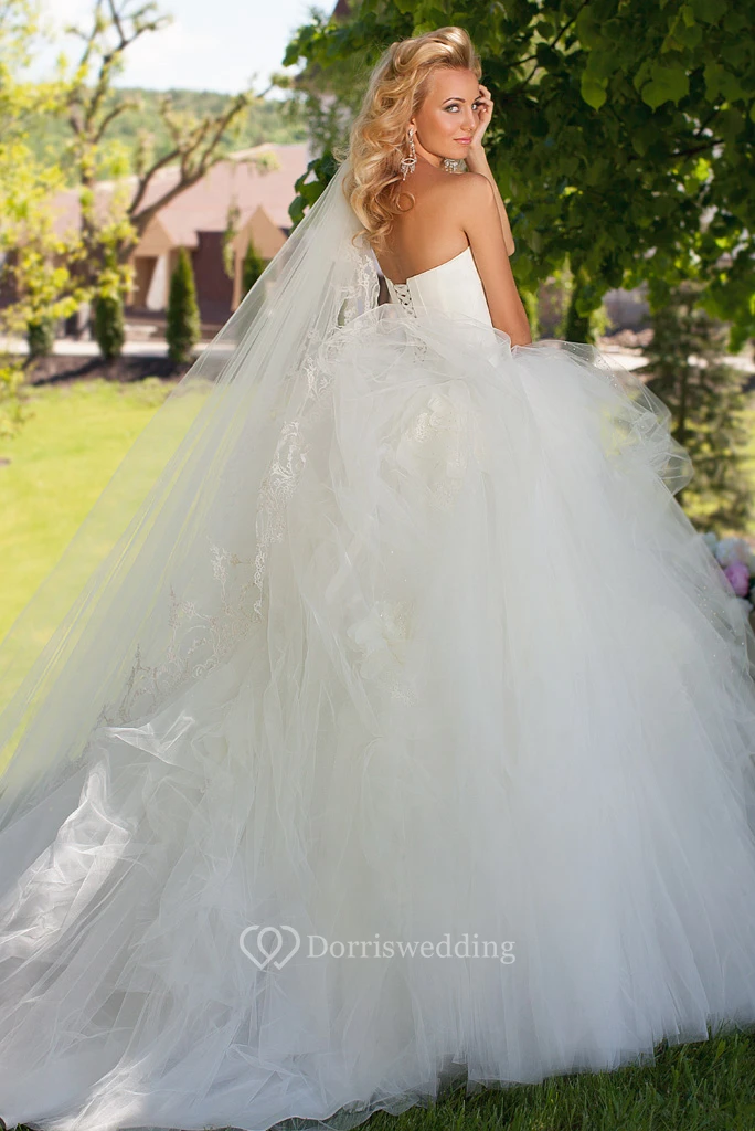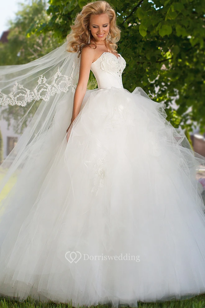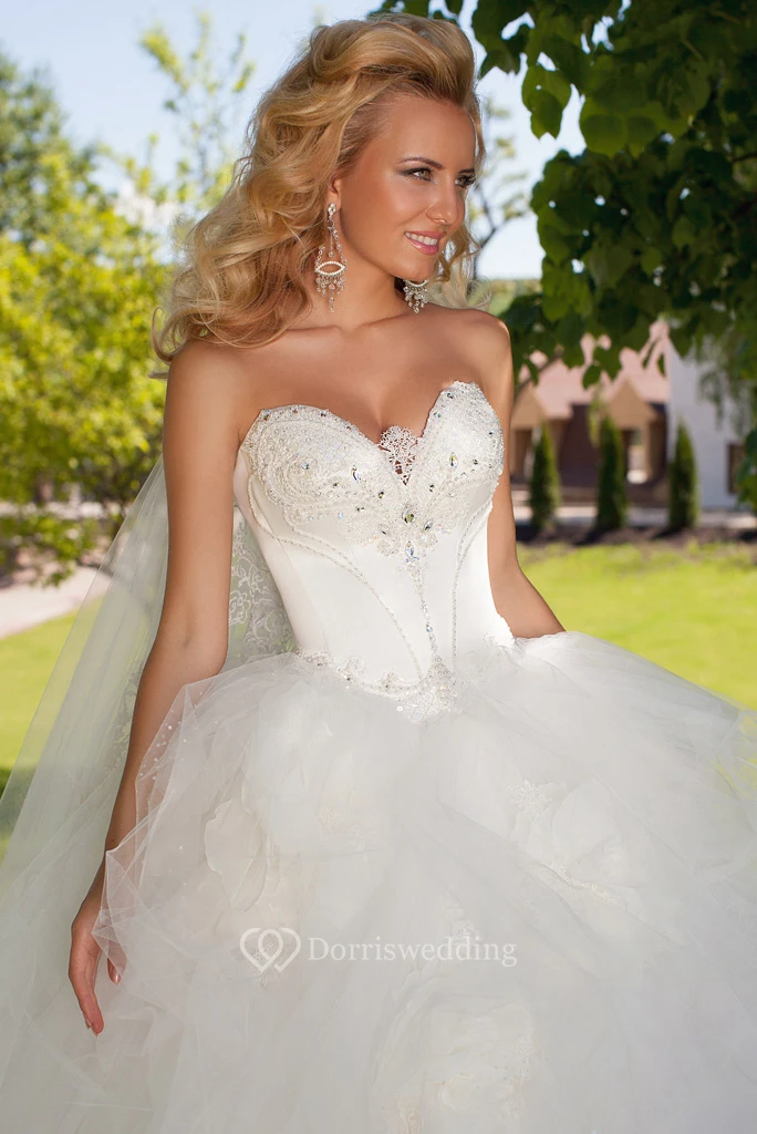 Floor-Length Sweetheart Beaded Tulle Wedding Dress With Ruffles And Lace Up