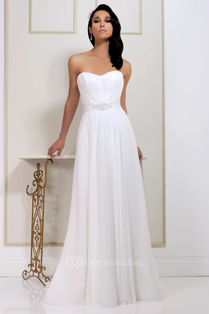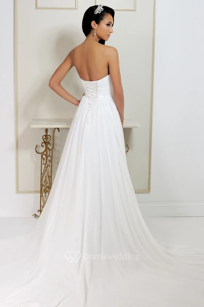Floor-Length Sweetheart Pleated Chiffon Wedding Dress With Chapel Train
