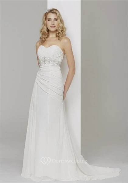 Floor-Length Sweetheart Ruched Chiffon Wedding Dress With Brush Train