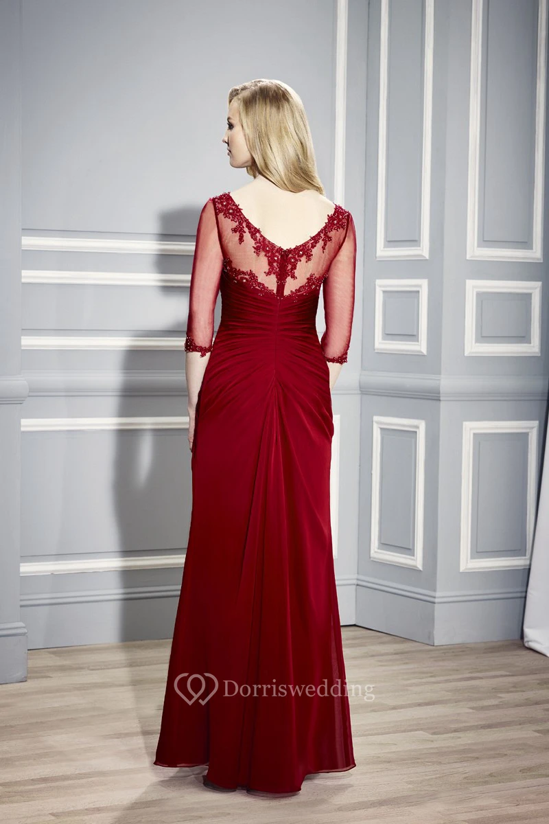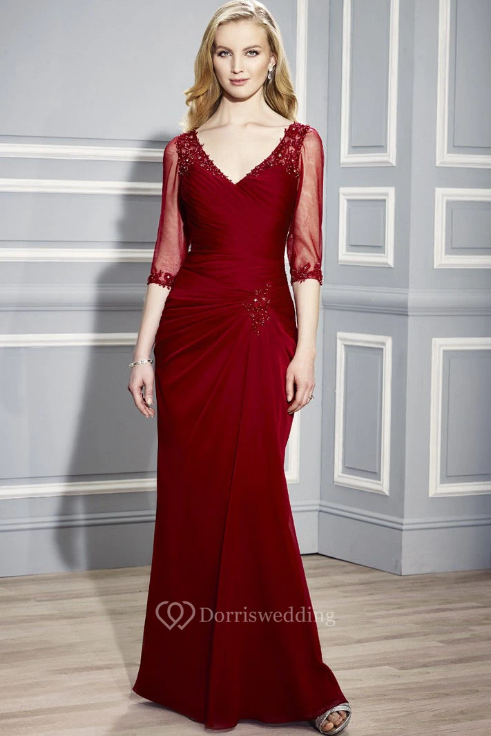 Floor-Length V-Neck Ruched Half-Sleeve Formal Dress With Beading