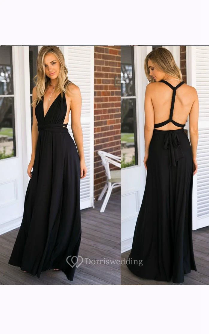Floor-length V-neck Sleeveless Chiffon Dress