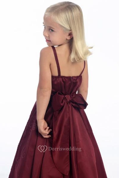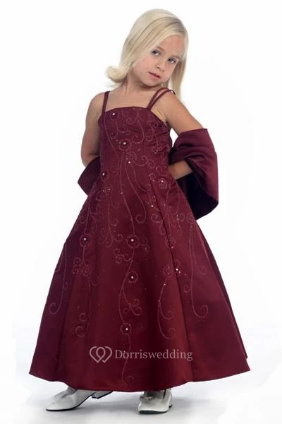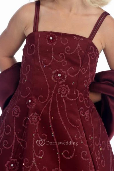 Floral Ankle-Length Beaded Floral Sequins&Satin Flower Girl Dress With Straps