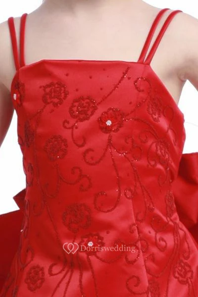 Floral Ankle-Length Beaded Floral Sequins&Satin Flower Girl Dress With Straps