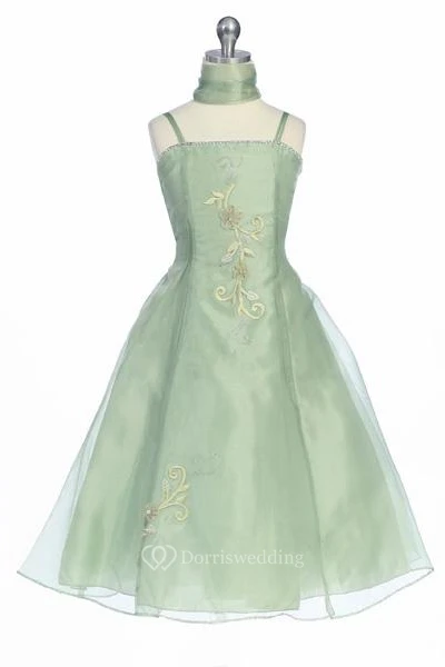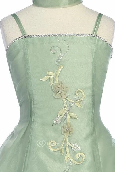 Floral Ankle-Length Embroideried Floral Organza Flower Girl Dress With Cape