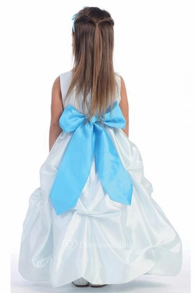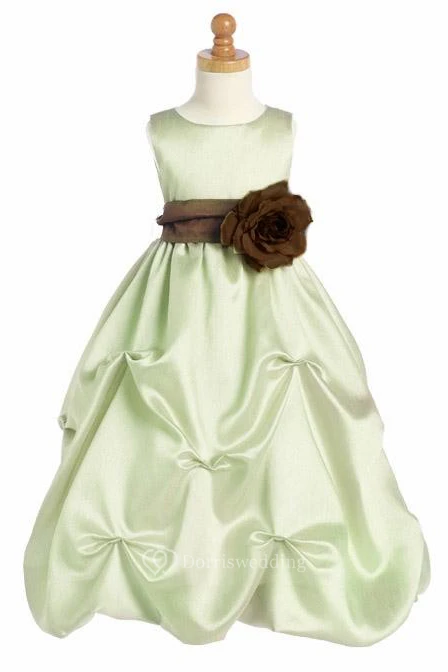Floral Floral Ruched Organza Flower Girl Dress With Sash