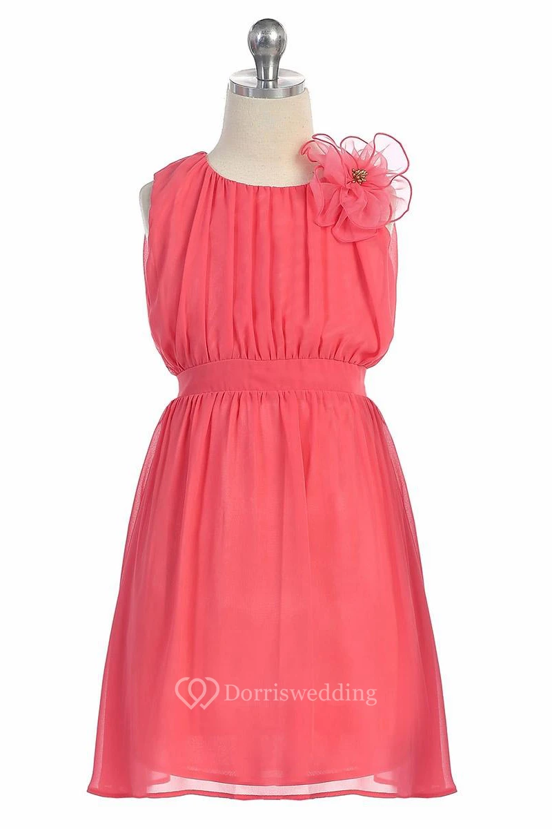 Floral Knee-Length Pleated Chiffon&Lace Flower Girl Dress