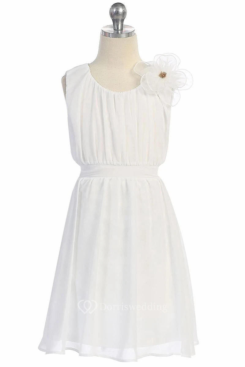 Floral Knee-Length Pleated Chiffon&Lace Flower Girl Dress