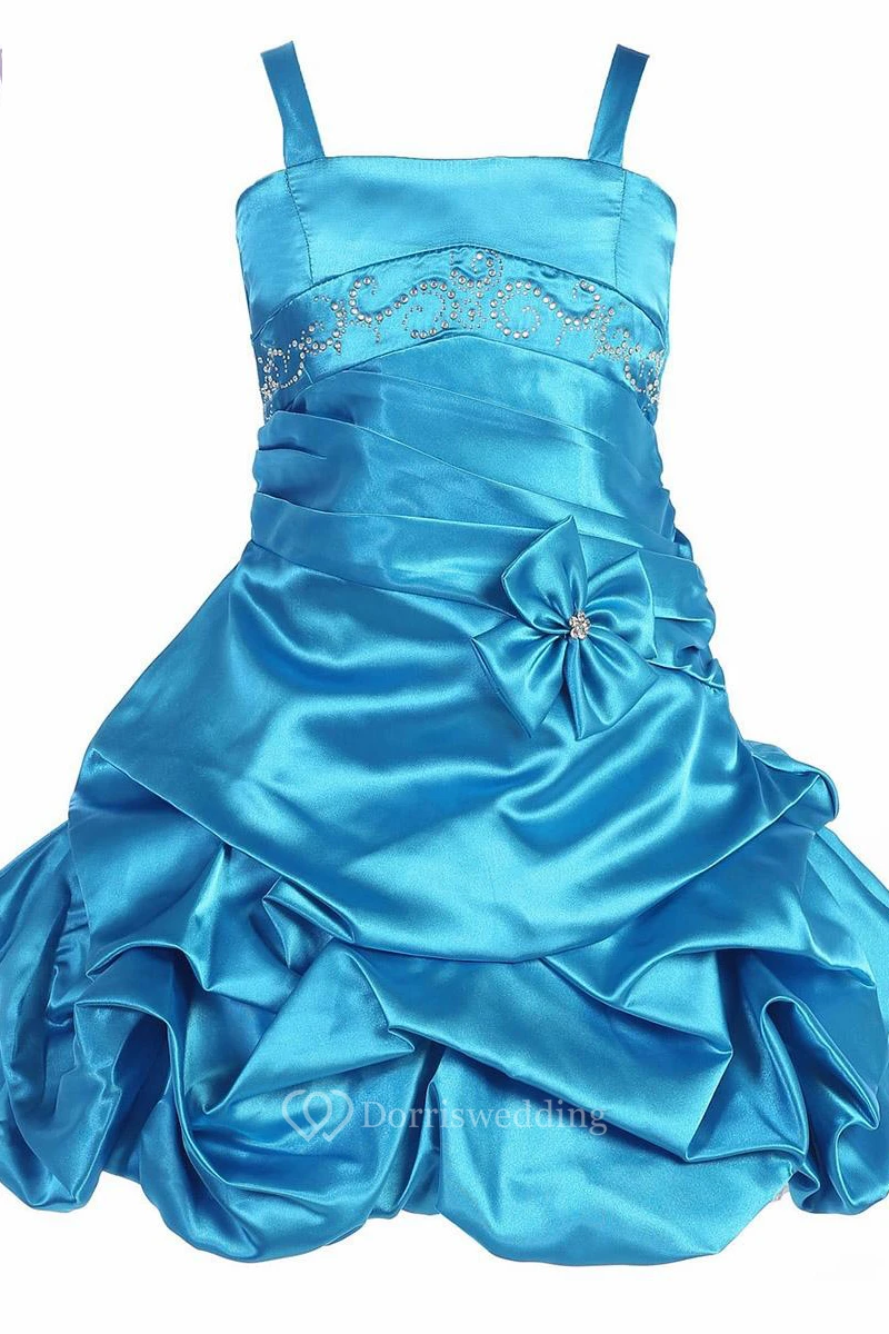 Floral Midi Beaded Pleated Satin Flower Girl Dress With Tiers
