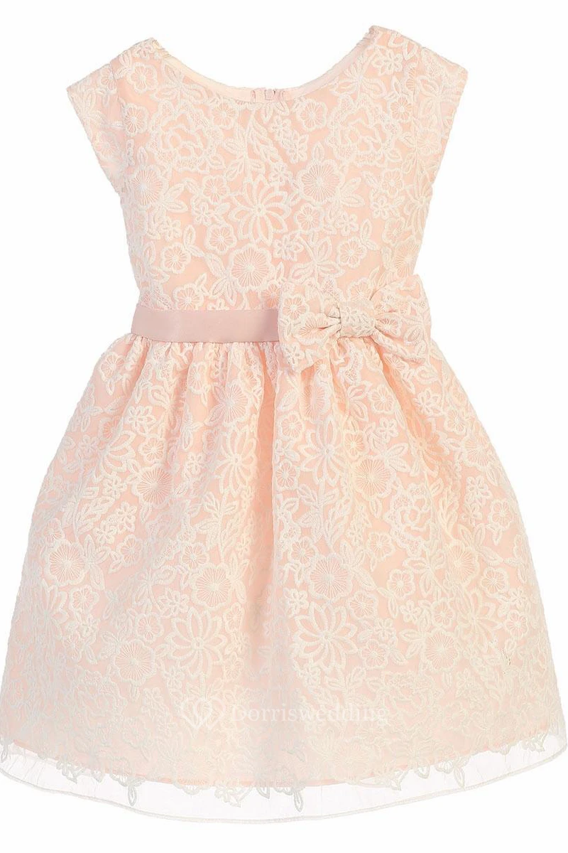 Floral Midi Bowed Cap-Sleeve Organza&Satin Flower Girl Dress With Embroidery