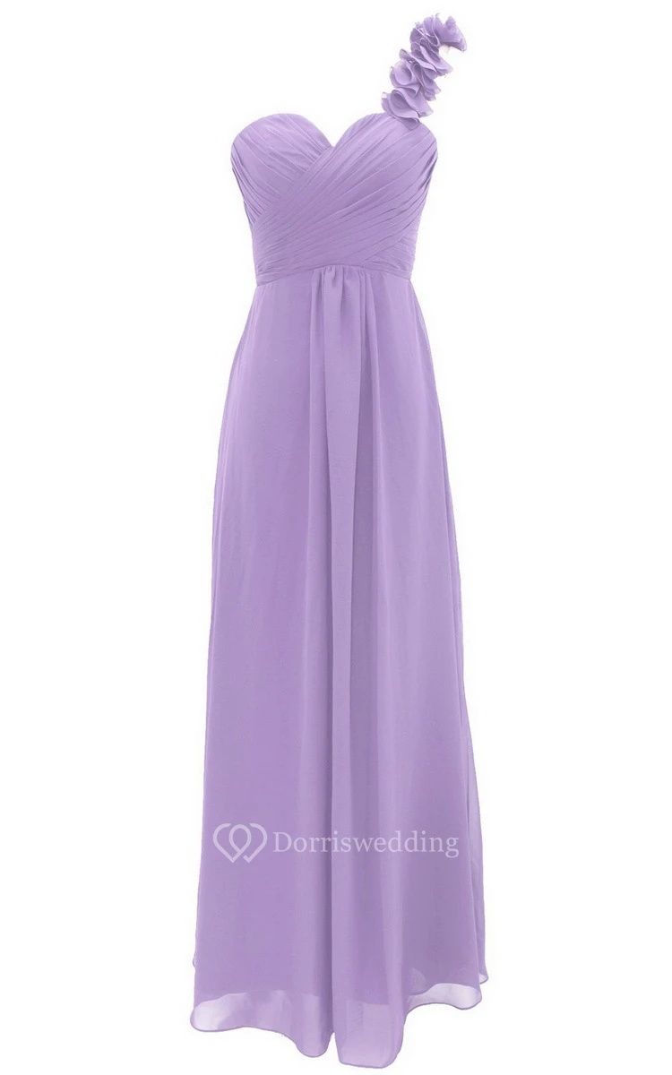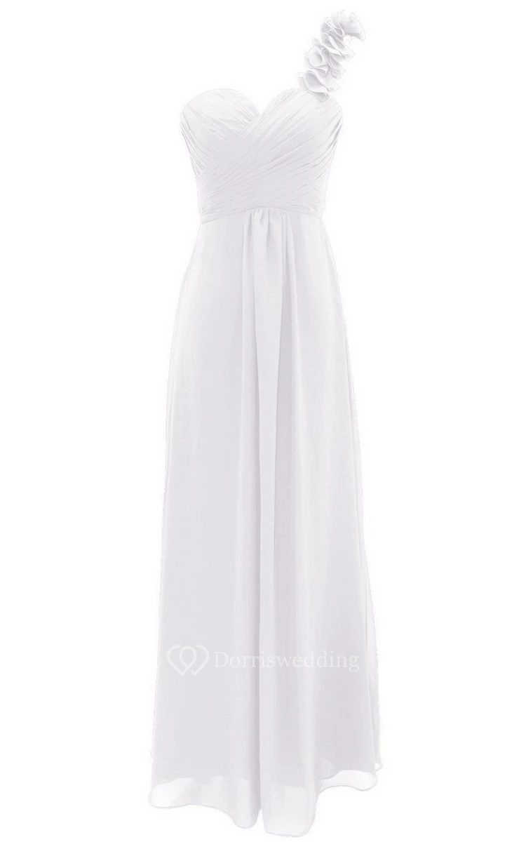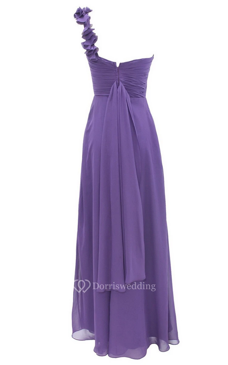 Floral One-shoulder Criss-cross A-line Gown With Drapping