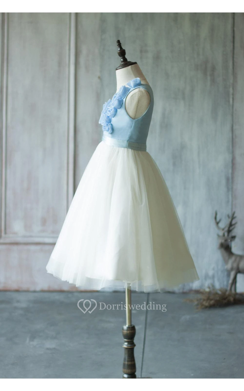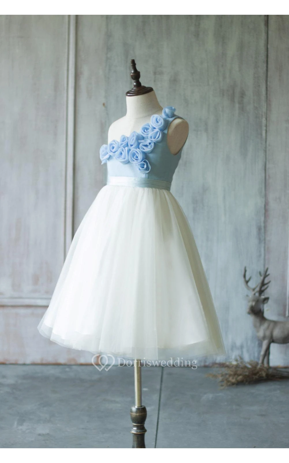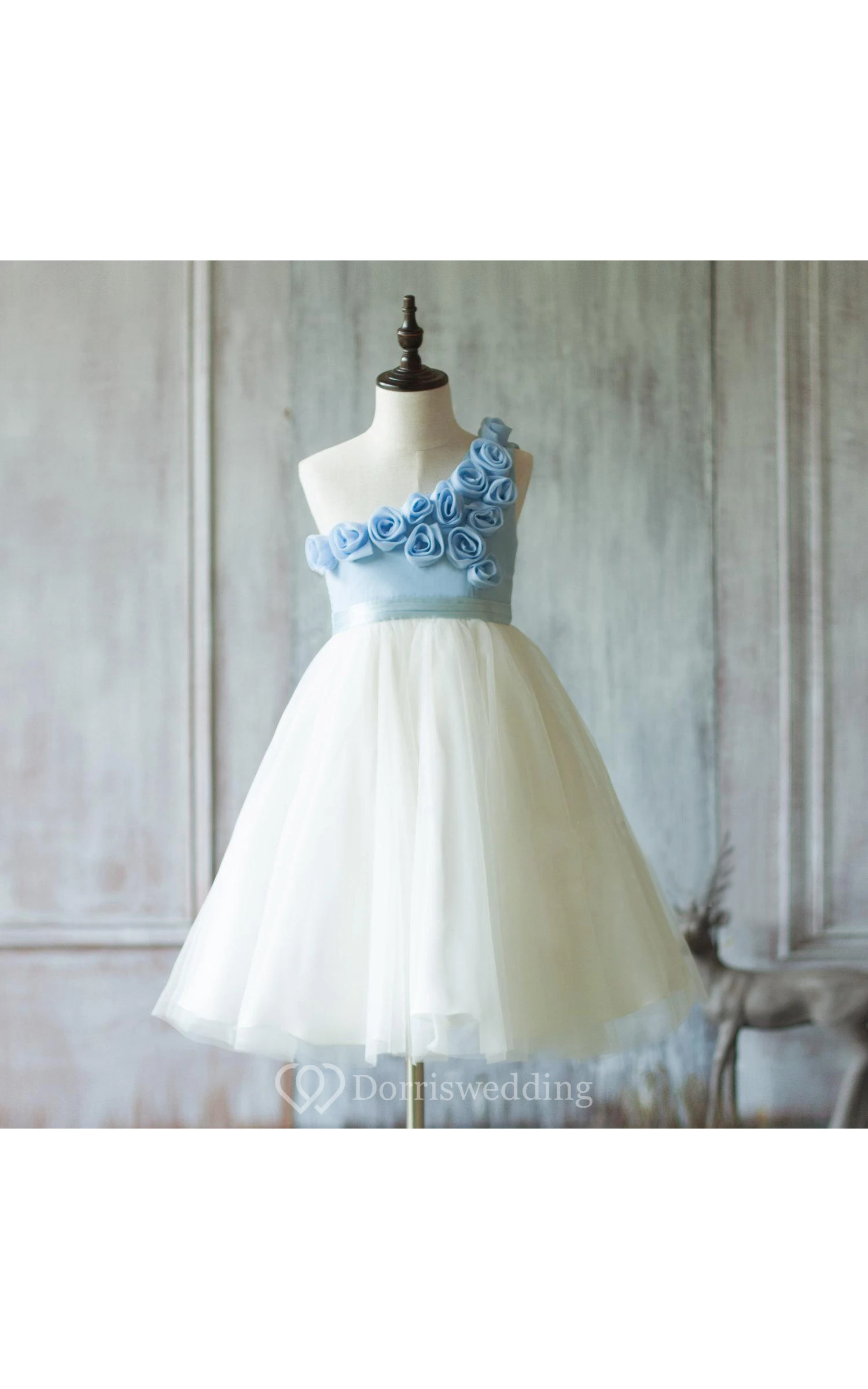 Floral One Shoulder Empire A-line Tulle Ankle Length Dress With Pleats